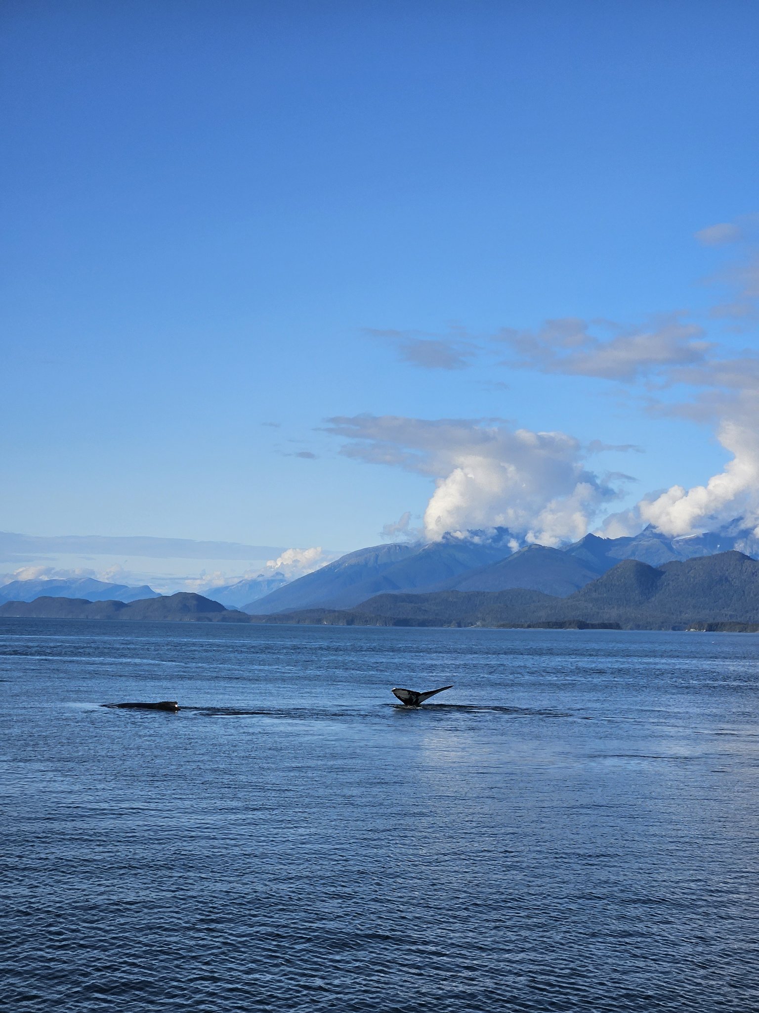 Rund sieben Wale zeigen sich voller Stolz und liefern eine unglaubliche Show. Wir sind umgeben von Bergen und Natur pur. Was für eine Kulisse! Man ist sich nicht bewusst, wie abgelegen Alaska wirklich ist. Juneau hat zwar Strassen, aber weit kann man auf diesen nicht fahren, denn die Strassen enden abrupt am Fuss einer Gebirgskette. Flugzeug und Schiff sind die Verkehrsmittel in Alaska.