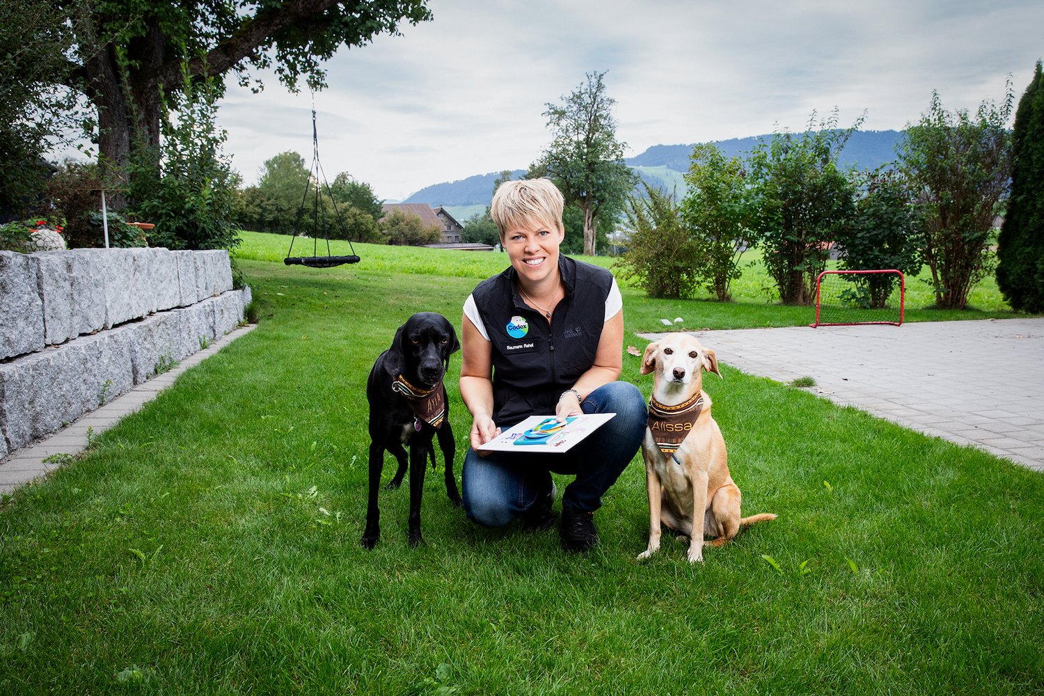 Mit ihren Hunden arbeitet Rahel Baumann in der Hundebissprävention: Sie zeigt Kindergärtnern, wie sie sich bei Begegnungen mit nicht angeleinten Hunden richtig verhalten. Sie und ihr Mann haben selber zwei Kinder und führen im Kanton Zürich einen Landwirtschaftsbetrieb mit Milchvieh, Ackerbau und Lohnunternehmen. «Mein Job ist die Haus- und Familienarbeit, im Stall bin ich der Notnagel», sagt Rahel Baumann. Im vergangenen Jahr war sie nach einem Unfall ihres Mannes stark gefordert, «jetzt ist er wieder gesund und ich freue mich riesig auf das Erlebnis «Landfrauenküche».