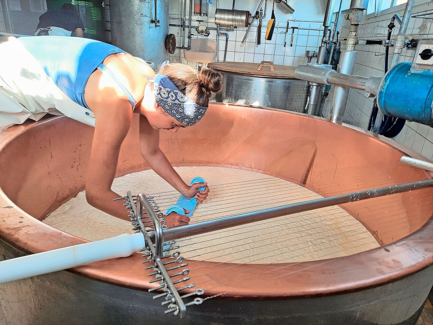 Was uns sehr entgegenkommt: Auf Valpun wird am Abend vor dem grossen Tag das letzte Mal gemolken und gekäst. Die Kühe werden im Tal dann trocken gestellt, daher ist es nicht nötig, dass sie am Morgen noch gemolken werden. Zudem haben wir keine mehr im Stall, die mehr als fünf Liter gibt.