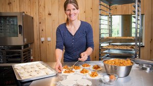 - Rapsöl in einer Pfanne erhitzen. Zwiebeln zugeben und glasig dämpfen. Paprika zugeben und kurz mitrösten. Mit Süssmost ablöschen. Tomatenpüree und Vollrahm zugeben, aufkochen und bei mittlerer Hitze 10 Minuten köcheln lassen, bis die Sauce leicht bindet. Mit Salz und Pfeffer würzen. Mit dem Stabmixer pürieren, abschmecken.