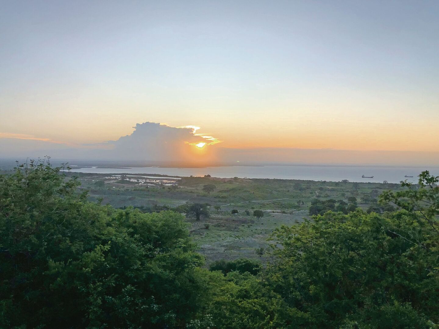 Die Sicht von unserer Terrasse aus ist spektakulär, man blickt auf die Bucht, welche die Stadt Pemba umgibt. Unterhalb kann man den Bauern zusehen, wie sie zum ersten Mal in ihren Mais- und Maniokfeldern das Unkraut jäten.