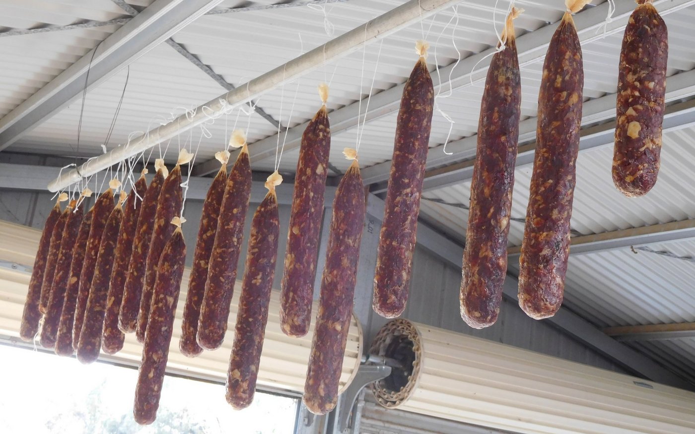 Wir produzieren dann mit unserer Wurstmaschine, die wir vor vielen Jahren gekauft haben, die Salami. Wir hängen sie ca. sechs Wochen in einen Schopf zum Trocknen. Danach vakuumieren wir sie und lagern die Salami für mehrere Monate im Kühlschrank. Es ist eine Köstlichkeit, die die ganze Familie schätzt, und dazu ist das Wursten ein kulinarisches Hobby.