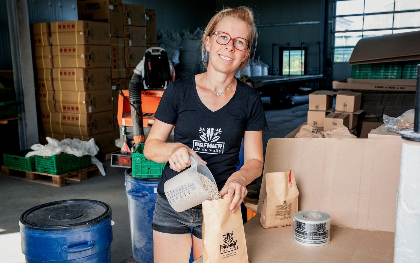 Spezialisiert ist der Familienbetrieb auf die Produktion von Nüsslisalat. Vor einigen Jahren kam eine weitere, deutlich ungewöhnlichere Kultur dazu: Guillods produzieren Reis. «Wir sind gerne innovativ, haben uns auch schon an CBD-Hanf, Ingwer und Kurkuma versucht.» Mittlerweile bauen sie insgesamt jedes Jahr 9 Hektaren Reis an, in der Nähe des Betriebs in La Sauge, wo die Felder mit Wasser der Broye geflutet werden («Premier Riz du Vully) und neu auch in Kappelen BE («Aare Riis»). Von der Setzlingsaufzucht über die Verpackung bis zur Vermarktung machen sie alles selbst und produzieren verschiedenste Sorten, z.B. auch schwarzen Reis. «Wir sind wirklich froh, dass wir den Versuch gewagt haben. Wir spüren ein grosses Interesse bei den Leuten.»
