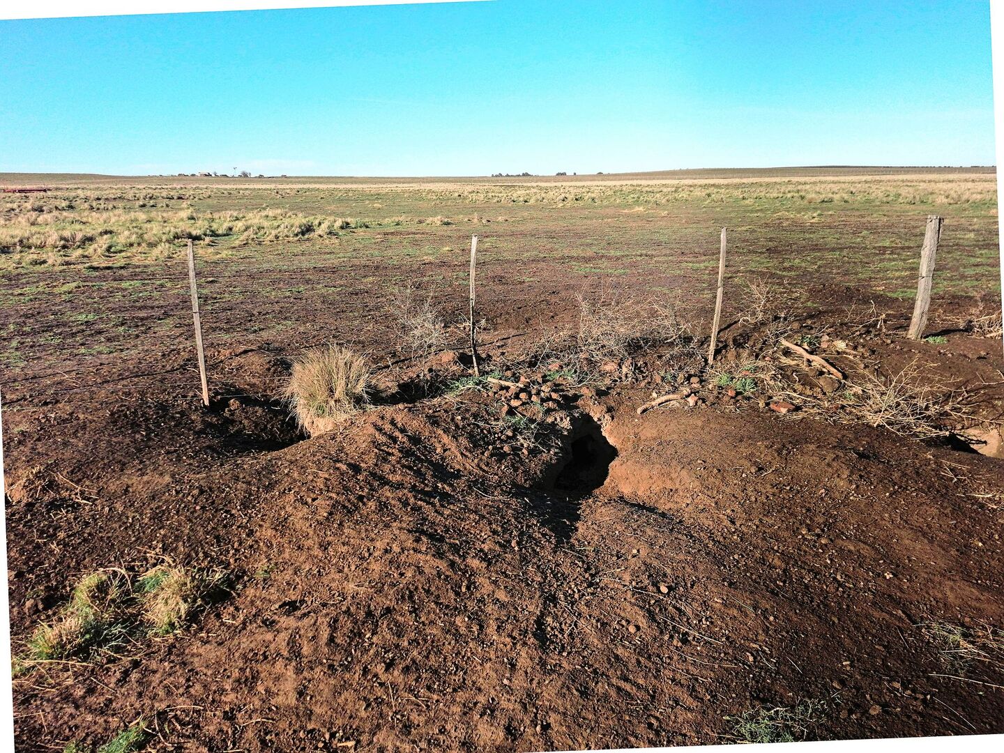 Ich habe dem Treiben lange zugeschaut, doch nun ist Schluss. Es werden immer mehr Viscachas und ich finde bei jedem Rundgang neue Höhlen auf meinem Land. Sie stellen neben der Ernteeinbusse eine Verletzungsgefahr für unsere Pferde und Rinder dar. Nicht auszumalen, wenn ein Pferd samt Reiter im nachgebenden Boden einbrechen oder sich in einem der vielen Höhleneingänge das Bein verrenken oder gar brechen würde.