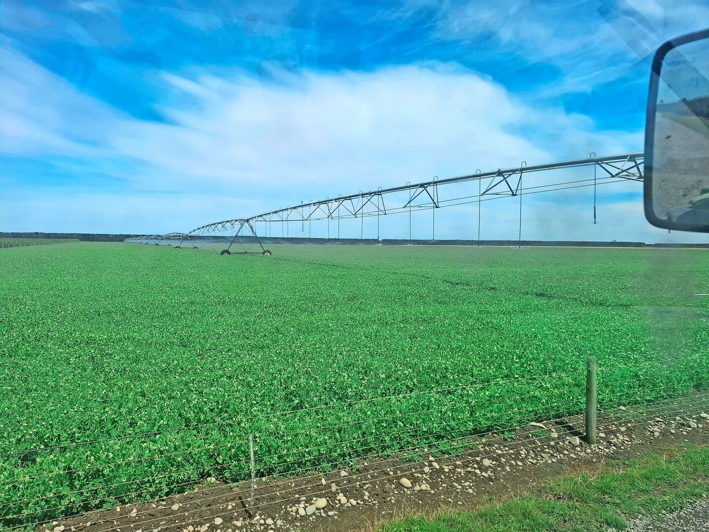 Die Farm liegt in Canterbury. Dies ist eine sehr niederschlagsarme Region auf der Südinsel Neuseelands. Hier fallen nur etwa 400–500 mm Regen pro Jahr. Da aber aus den nahegelegenen neuseeländischen Alpen reichlich Wasser vorhanden ist, können die Flächen sehr gut bewässert werden. Dies ist eine Beschäftigung, die eigentlich jeden Tag anfällt.