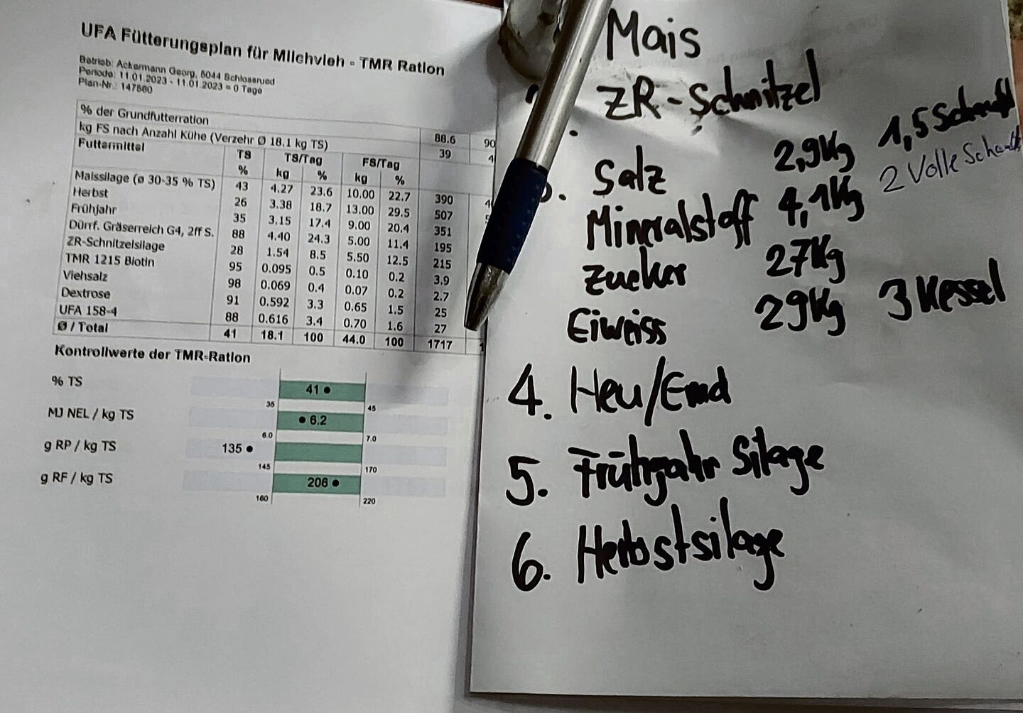 Natürlich erhalten die Kühe auch noch Kleinkomponenten wie Salz- und Mineralstoffpellets, dazu kommt noch Kraftfutter. All diese Komponenten haben wir einzeln gefüttert.