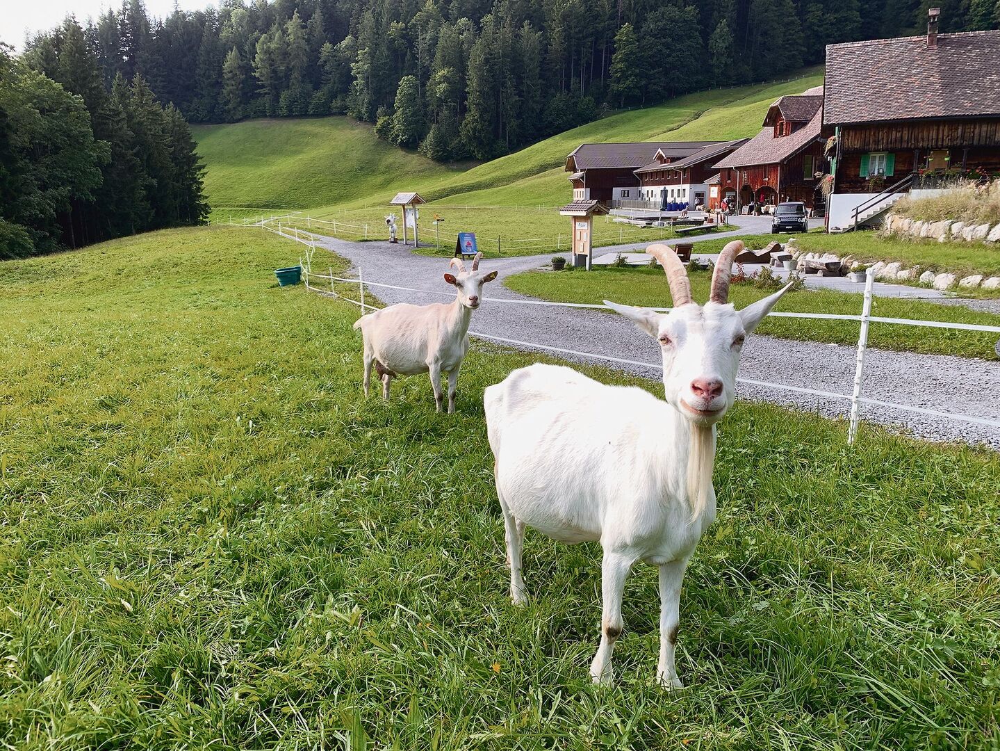 Der neue Stall bietet Platz für 160 Tiere, im Erdgeschoss wird gefressen und gemolken, zwölf miteinander im Melkstand. Im Obergeschoss ist die Liegehalle, welche die Ziegen über zwei steile Treppen erklimmen. Auch das Heu wird hier gelagert und belüftet. Bezüglich Heuqualität seien Ziegen sehr anspruchsvoll. Alles Futter wird aber selber produziert. Viele Flächen werden gemäht zur Heu- und Emdgewinnung sowie bis zum ersten Schnee beweidet. Dann wird eingestallt, die Ziegen können über den Winter in einen Laufhof ins Freie.