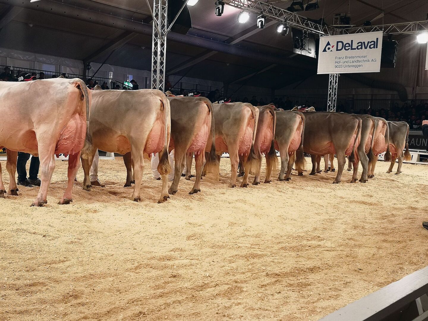 Nicht wegzudenken war das Line-up bei den Kühen über 50'000 kg Milchleistung. Exterieurstarke, fitte Kühe, die schon einiges geleistet haben und stolz im Ring mithalten konnten. Dies alles bestätigt wieder einmal, dass die braune Kuh mit Langlebigkeit, Gesundheit, Robustheit und sehr viel Potenzial und Erfolg verbunden ist. Denn die braune Kuh versagt nicht. Wie mit Ovomaltine: Damit kannst du es vielleicht nicht immer besser, aber sicher länger.