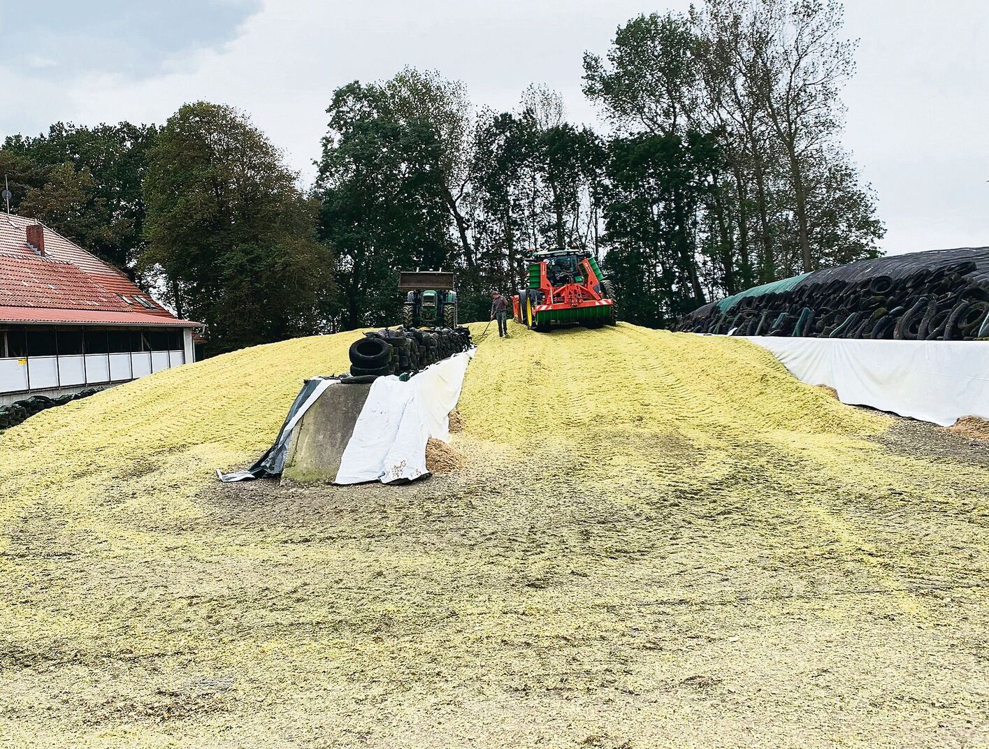 Gleich zweimal haben wir in den letzten 14 Tagen Silo eingefahren: zuerst einen doch relativ ertragreichen vierten Schnitt und kurz darauf den Silomais. «Damit haben wir im 2023 sage und schreibe neun Silos gefahren», rechnen Henrik und Timo mir vor.