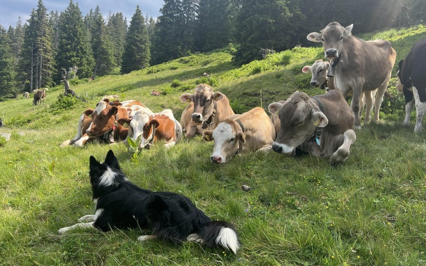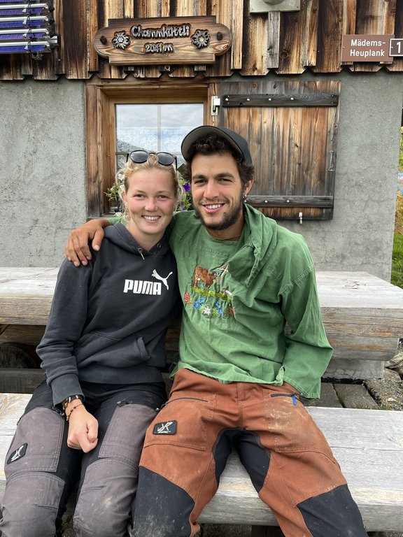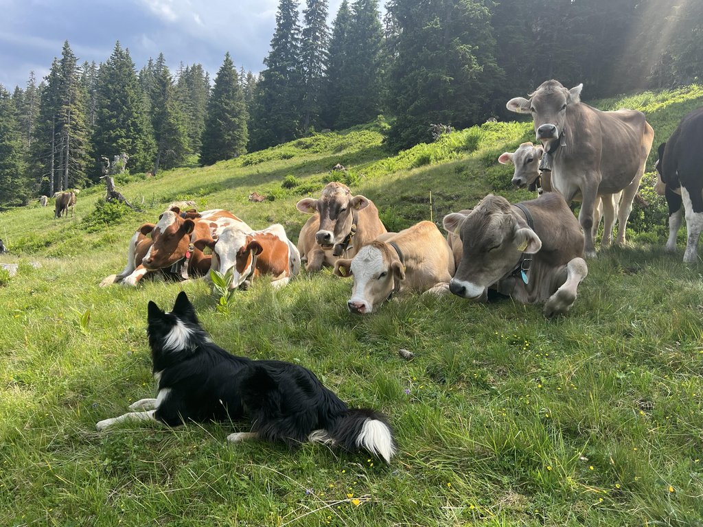 Wir alle haben uns gut eingelebt. Beide kamen langsam in einen gewohnten Rhythmus. Unser Tagesablauf ist am Morgen nach dem Frühstück zuerst die Rinderkontrolle und nach dem Mittagessen meistens ins Obersäss zum Zäunen und Vorbereiten. Am späteren Nachmittag oder am Abend wandern wir nochmals zu den Rindern für einen kurzen Kontrollblick. Auch unsere drei Hühner lebten sich ein und legen fleissig jeden Tag drei Eier. Unsere 184 Rinder haben sich langsam an uns gewöhnt und sind zutraulicher als zu Beginn des Alpsommers.