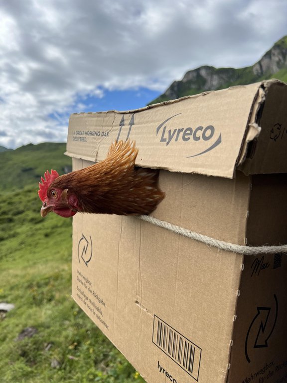 Am 24. Juli ging es los mit Zügeln ins Obersäss. Wir hatten viel Gepäck, Esswaren, Kleider usw., welche 300 Höhenmeter in die nächste Hütte gezügelt werden mussten. Am 29. Juli gingen wir dann mit allen Tieren, inklusive den Hühnern, hoch. Wir organisierten viele Helfer, welche mit uns die restliche Ware nach oben transportierten, das Vieh zügelten und die untere Hütte putzten. Am Mittag gab es dann die wohlverdienten Spaghetti Bolognese. Am Abend gingen wir müde zu Bett, da der Tag anstrengend war. Jetzt kommt wieder eine neue Periode unserer Alpzeit, auf welche wir uns sehr freuen. [IMG 3]