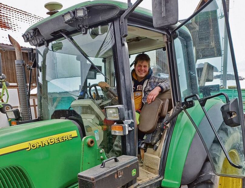 Auf unserem Hof halten wir neun Wasserbüffel, 30 Rinder, drei Schweine und zehn Pferde. Im eigenen Hofladen verkaufen wir täglich Fleisch und veranstalten zudem alle drei Monate einen Frischmarkt. Bereits an meinem ersten Arbeitstag auf dem Hof Moosmatt begleitete ich meinen Arbeitgeber zum Mähen. Dafür benutzten wir das Frontmähwerk, welches an unserem John-Deere-Traktor befestigt wurde. Im Verlauf des Tages gelangten wir an ein Feld mit starkem Gefälle. Als ich das Gelände sah, bekam ich ein wenig weiche Knie, da ich dachte, der Traktor würde kippen. Als wir jedoch mit dem Mähen anfingen, staunte ich nicht schlecht, als der Traktor dem Gefälle entgegen stand. Und dies ohne Doppelräder. Mein Chef erklärte mir, dass die Breitreifen dem Traktor mehr Stabilität verleihen und somit stärkere Gefälle keine Probleme darstellen. Am frühen Abend liessen wir die Tiere auf die Weide, um sämtliche Ställe zu reinigen. Zudem konnten wir neues Stroh streuen. Als nächstes tränkten wir die Kälber und verteilten Kraftfutter. Nun war ein kurzweiliger und spassiger Tag zu Ende gegangen. Ich habe grosse Vorfreude auf die nächsten Arbeitstage und das kommende Lehrjahr.