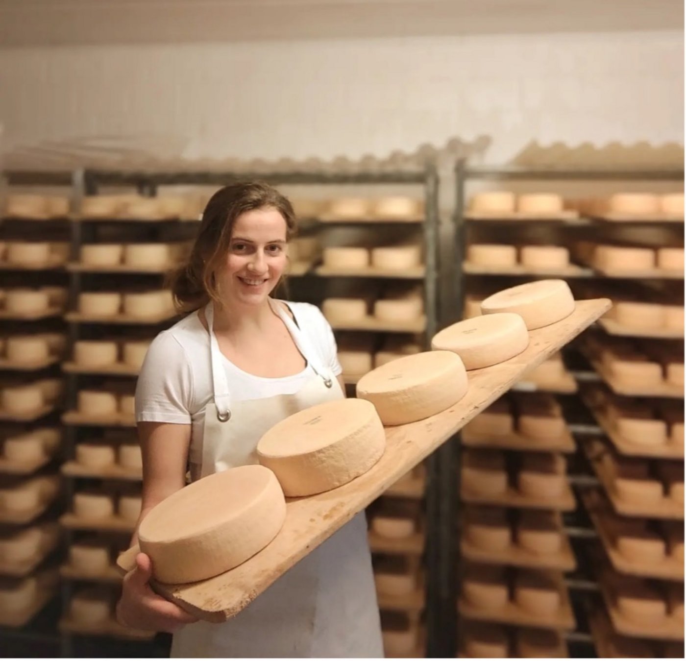 In meinem Lehrbetrieb stellen wir Joghurt, Weissschimmel-, Hart-, Halbhart-, Weich-, Grill- und Frischkäse her. Alle Produkte sind ausschliesslich aus Ziegenmilch. Das Prinzip vom Käsen bleibt dasselbe, dennoch bringt die Ziegenmilch im Vergleich zur Kuhmilch einige Unterschiede mit sich. Ich finde, es beginnt schon bei den Milchbauern. Mein geschultes Auge auf Bauern, und sowieso auf Männer, sieht einem Bauern von Weitem an, ob er Kühe oder Ziegen melkt. Ziegenmilch hat wie die Ziegenbauern einen wunderbaren Charakter. Ziegenmilch ist sensibler als Kuhmilch, was einen sehr sorgfältigen und liebevollen Umgang verlangt. Die Fettkügelchen in der Ziegenmilch sind kleiner, der Kaseingehalt ist tiefer. Dadurch wird die Gallerte etwas weicher. Dies beansprucht eine sehr sorgfältige Bruchherstellung.
