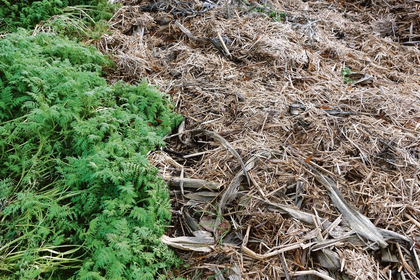 Am einfachsten ist es, schon im Garten vorhandenes Material als Mulch zu nutzen. Dafür eignet sich zum Beispiel Laub im Winter ganz deckend und im Sommer getrockneter Rasenschnitt als feiner Mulch zwischen den Pflanzen. Andere Varianten wie Chinaschilf oder Strohhäcksel sind im Handel einfach erhältlich oder sogar schon auf dem Betrieb vorhanden.