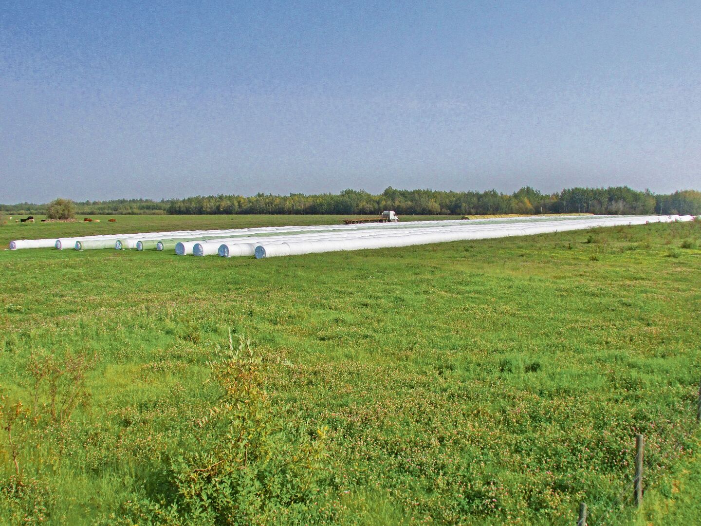 Das Wetter kooperierte dieses Jahr nicht, um Heu zu machen, aber wir konnten bisher knapp 2500 Siloballen und circa 500 Gersten-Strohballen machen. Ein Teil der Siloballen ist Hafer, den wir in der Milchreife siliert haben, der Rest ist ein Gras-Klee- Mix. Ein Teil des Futters wurde ab Feld zugekauft und musste circa 30 km weit transportiert werden. Das Laden, der Transport, das Entladen und das Wickeln in Silier-Plastik waren unsere Verantwortung. Dafür mussten wir lokale Temporär-Hilfen anstellen, denn natürlich sind im Süden alle am Dreschen und niemand hatte Zeit, um hier auszuhelfen.