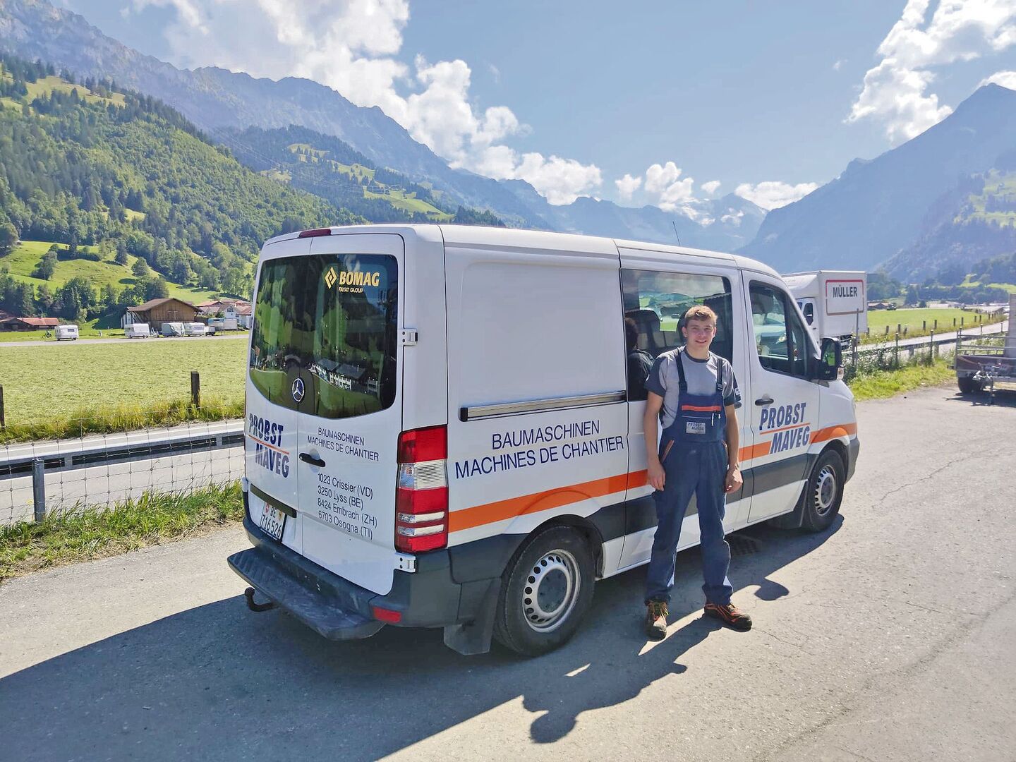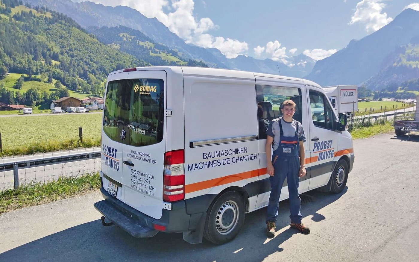 Anfang August fing ich mit meiner Berufslehre als Baumaschinenmechaniker an. Ich erlerne den Beruf bei der Probst Maveg AG in Lyss, Kanton Bern. Die Filiale dort ist die grösste, daneben gibt es noch drei weitere Standorte in der Schweiz. Zu unseren Tätigkeiten gehört das Reparieren und Verkaufen von Baumaschinen, technischer Support und der Ersatzteildienst. Unsere Werkstatt ist in vier Bereiche aufgeteilt. Erdbewegung,Strassenbau, Spezialbau und Kleingeräte.