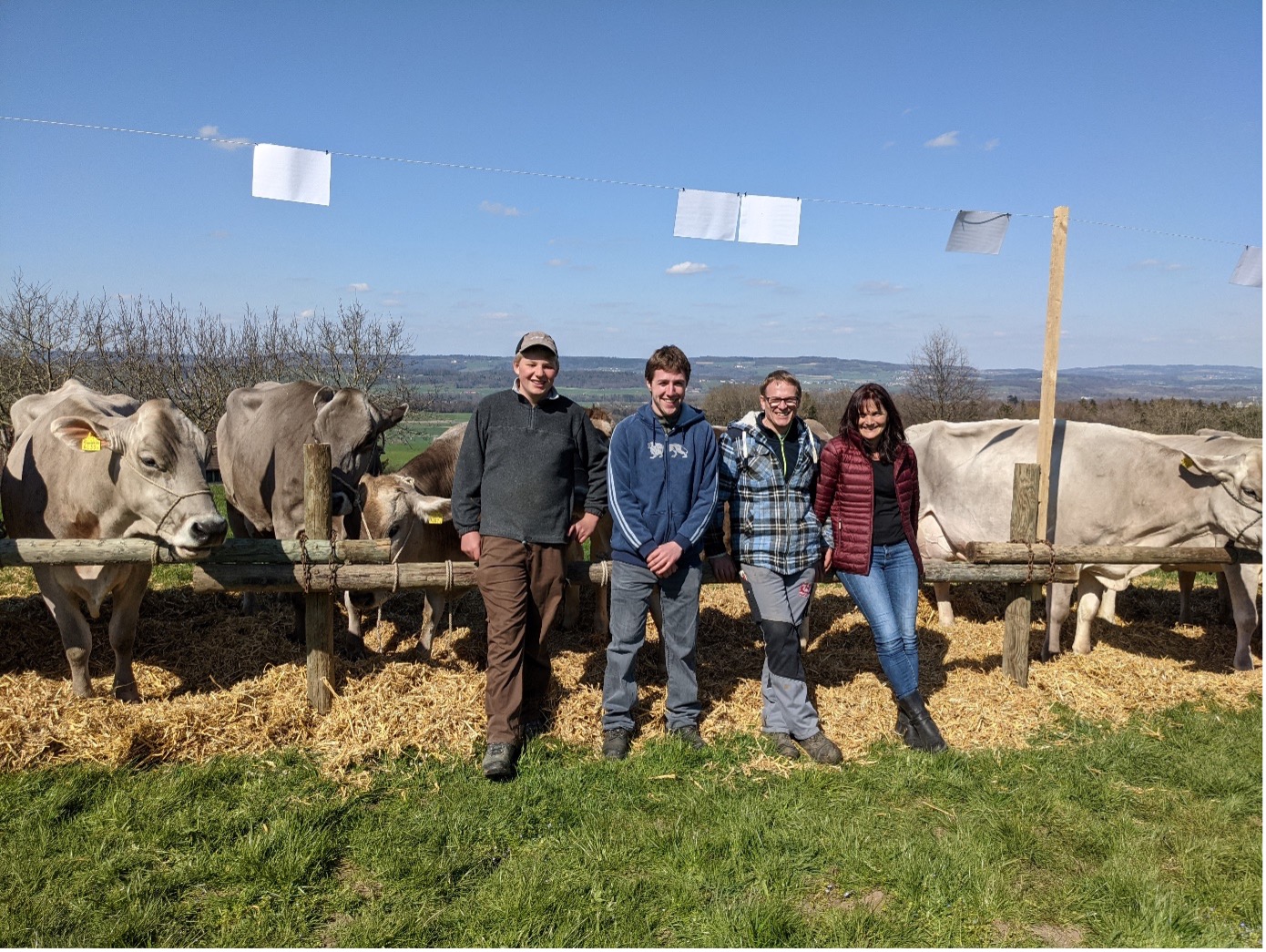 Als dann alle Tiere bereit für die Schau waren, zügelten wir eine Kuh nach der anderen vom Stall auf die vorbereitete Wiese vor dem Hof. Sobald die beiden Familien dann nebeneinander standen, sah ich, weshalb sich der Aufwand gelohnt hat: Es ist ein wirklich schöner Anblick, die zufriedenen Kühe über verschiedene Generationen an einem Ort zu sehen. Die beiden Familien wurden als A-Familien eingestuft, worüber wir uns ebenfalls freuen durften.