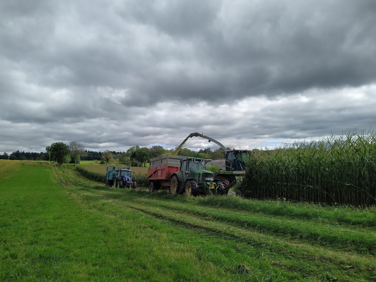 Endlich konnten wir unseren Mais ernten und die Silowurst ist deutlich länger geworden als gedacht. 61 Meter Ganzpflanzensilage von 4,5 Hektaren Mais, der auf 900 m ü. M. gewachsen ist, übertreffen unsere Erwartungen deutlich. Vor allem, da er so einiges ertragen musste, diesen Sommer.