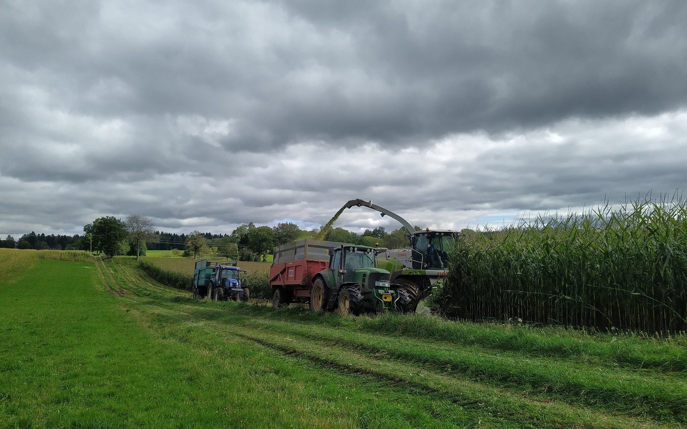 Auf unseren besten Böden möchten wir mit einer Mais-Kunstwiesen-Rotation die Futtermenge und die Qualität steigern. Dieses Jahr fällt aber das Wintergrün schon einmal wortwörtlich ins Wasser. Den Mais konnten wir nun zwar an einem trockenen Tag ernten, jedoch ist für mindestens die nächsten zwei Wochen Dauerregen angesagt. Deshalb ist die Hoffnung gering, dass sich eine Ansaat unter diesen Bedingungen lohnen würde.