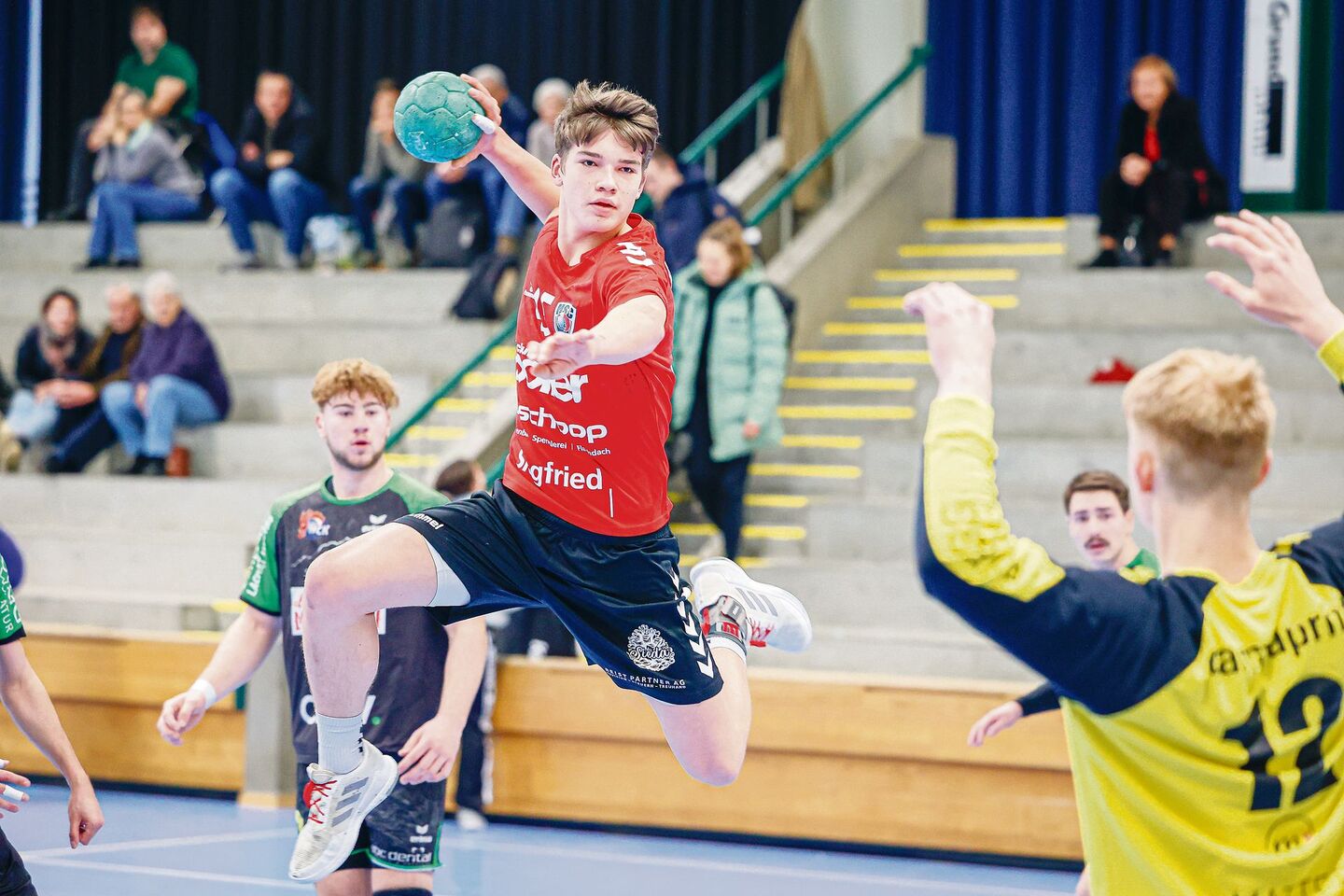 Die Original Braunen tragen imposante Hörner. Dennoch sehen sie eher klein aus neben Lino Wiederkehr. Der 187-cm-Mann bewegt sich entspannt in der Herde. «Die Tiere sind sehr zutraulich», versichert er und krault da und dort einen Nacken. Dass er Kühe mag, muss er gar nicht erst erzählen. Zuchtmuni Golden bleibt wohlwollend auf Distanz. Im Bedarfsfall könnte Lino Wiederkehr aus dem Nichts einen Ausfall antäuschen und wäre blitzschnell weg. Das gehört für ihn zum Alltag: Der 18-jährige Handballer steht beim HSC Suhr Aarau als Elitejunior unter Vertrag.