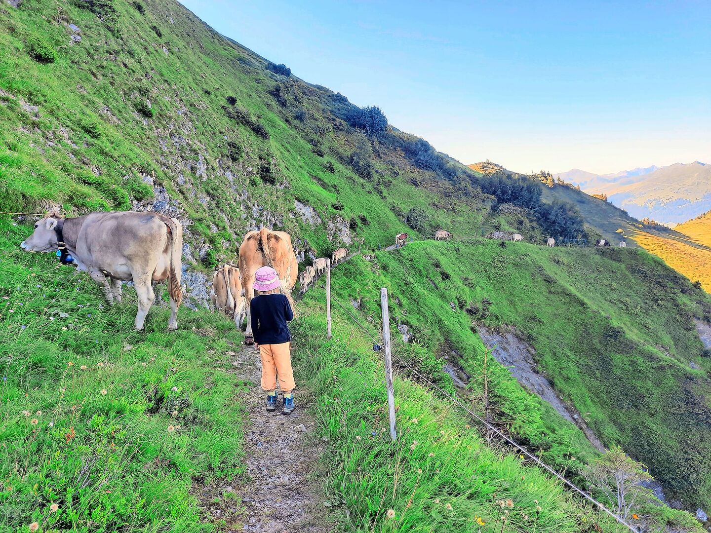 Bei den Kindern überwiegt momentan die Freude über die Rückkehr nach Hause und Ronya freut sich riesig auf den Kindergarten. Doch für uns Eltern ist die Situation nicht ganz einfach. Zwölf Sommer waren wir zusammen z Alp und jetzt sitze ich hier, ohne Kühe, ohne unser wertvolles Team, während Reto und die anderen auf der Alp Valpun zum Rechten schauen.