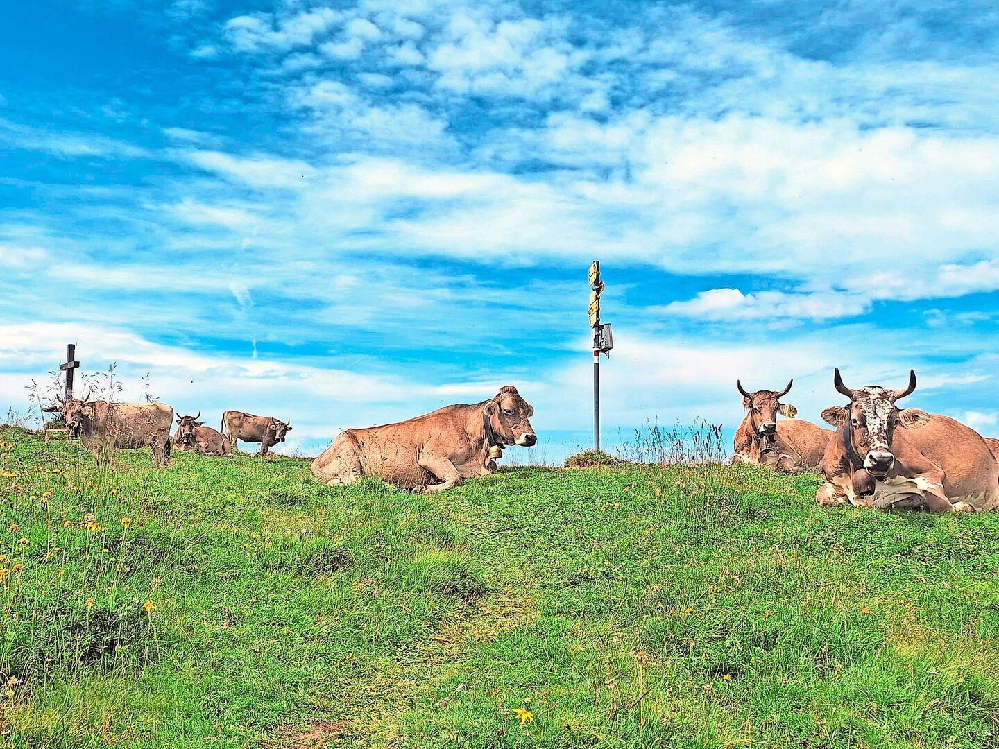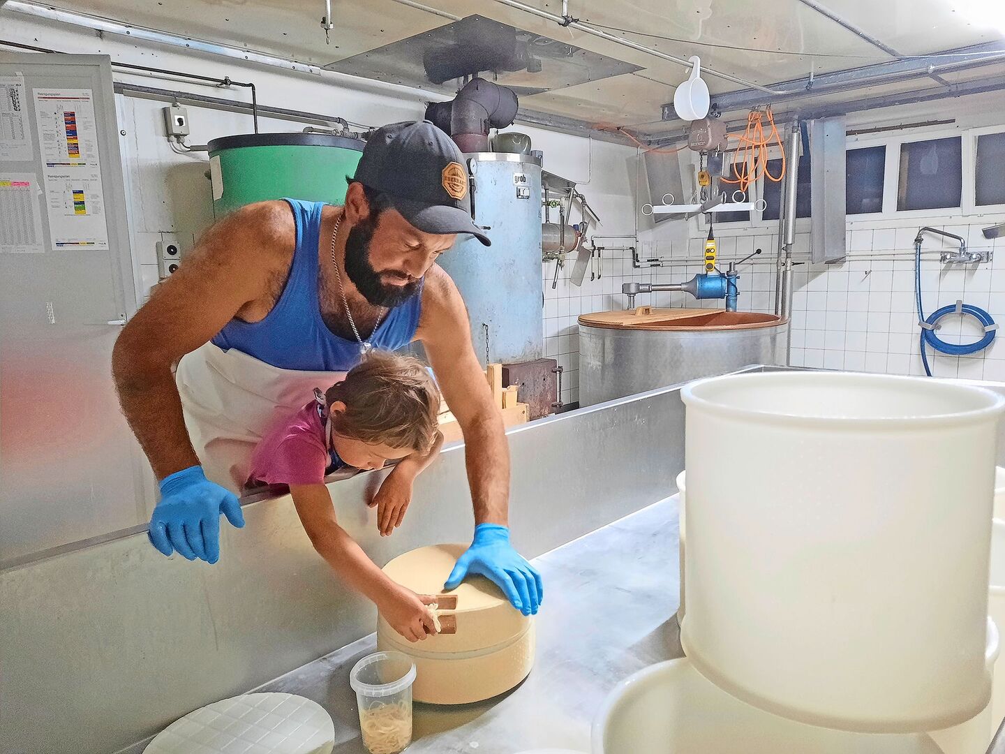 Da sie bei uns als Zusennin arbeiten möchte, haben wir unser Team umgestellt und der bisherige Zusenn Andreas ist nun als Hirt mit seiner Schwester Jasmin für unsere Viehherde zuständig. Während die Herde der Galtkühe stetig anwächst, ist unsere laktierende Kuhherde auf 77 Tiere geschrumpft. Im Käsekessi finden wir täglich noch um die 700 Liter Milch, woraus unser Sennenteam zwölf Käselaibe produziert.