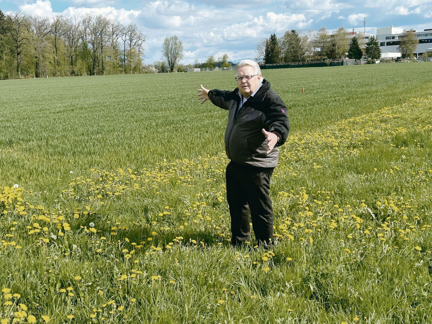 Auf seiner 4,5 ha grossen Parzelle an der Rümlangerstrasse soll ein Retentionsbecken gebaut werden. Der Flughafen will darin den Abfluss für die im Winter benötigten Enteisungsmittel ableiten, wo diese von Pflanzen abgebaut würden. Aber im Winter ruht die Vegetation. Da wird nichts abgebaut, zumal dann diese Pflanzen als Sondermüll entsorgt werden müssen. «Sie sollen doch direkt den Abfluss in einem Tank lagern und als Sondermüll entsorgen», sagt Paul von Euw.