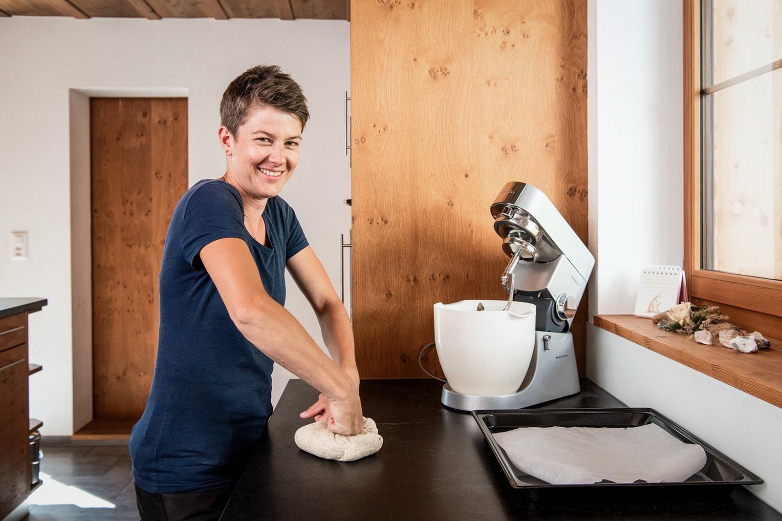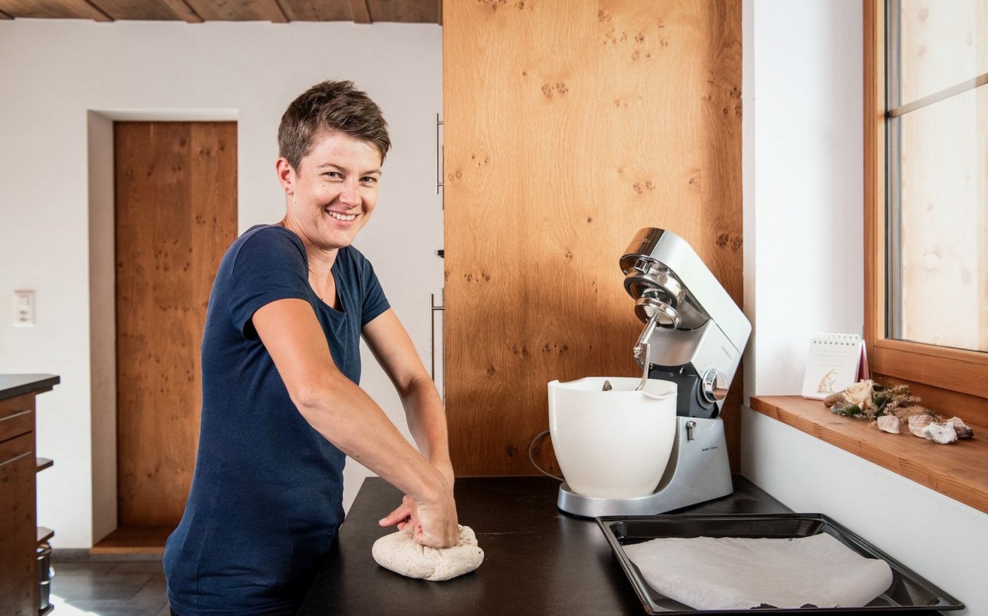 Meine Küchenwunderwaffe: Meine ganze Küche, ich habe sie selbst für die Bäuerinnenprüfung geplant. Sie hat viele praktische Eigenschaften wie je eine ausziehbare Waage und Küchenmaschine, und natürlich passen die Arbeitsflächen perfekt zu meiner Grösse.