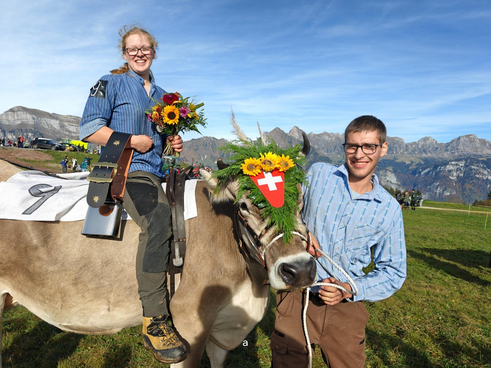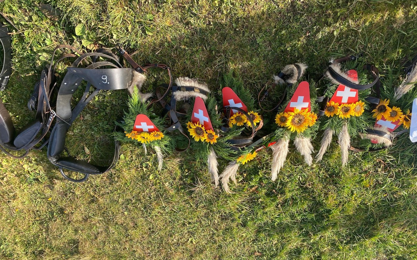 Als der Tag des Rennens gekommen war, machten sich Seraina Pedrolini, David Schmid und Melissa auf und fuhren auf den Flumserberg. «Am Vormittag werden die Kühe mitsamt den Reiterinnen vorgestellt und die Leute können Wetten abgeben, wer denn gewinnen werde. Das ist bis zum Start um 15 Uhr möglich», erklärt Pedrolini. Melissa sei zunächst ganz ruhig geblieben, doch offenbar liess auch sie sich vom Rennfieber anstecken, als sie den Gurt und einen Kopfschmuck angelegt bekam.