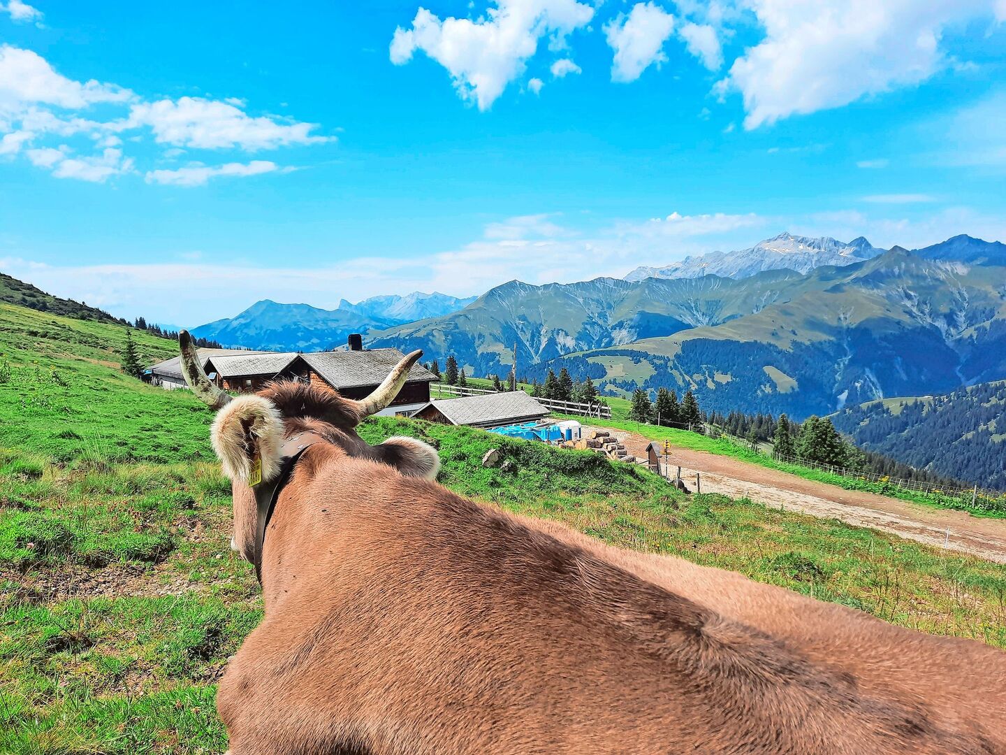 Dreckig, verschwitzt und voller neuer Eindrücke erreichen wir den Stall. Wir zeigen Anna, wie sie eine angebundene Kuh streicheln kann, sie strahlt übers ganze Gesicht. Das Stadtmädchen konnte während einiger Stunden in eine für sie völlig unbekannte Welt eintauchen. Und mir wurde einmal mehr bewusst, wie wertvoll die Zeit mit unseren Kindern hier oben ist.