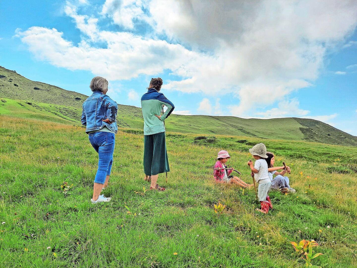 Nachmittags wollen die Städterinnen beim Küheholen helfen. Das heisst, Anna will unbedingt helfen, Grossmutter und Tochter sehen sich gezwungen, mitzukommen. Unser Hirtenteam fährt mit dem Quad so weit Richtung «Chrüz» wie nur möglich und beginnt mit dem Zusammentreiben der Kühe. Ronya, Cyrill und ich laufen mit der Touristengruppen etwa auf halbem Weg entgegen.