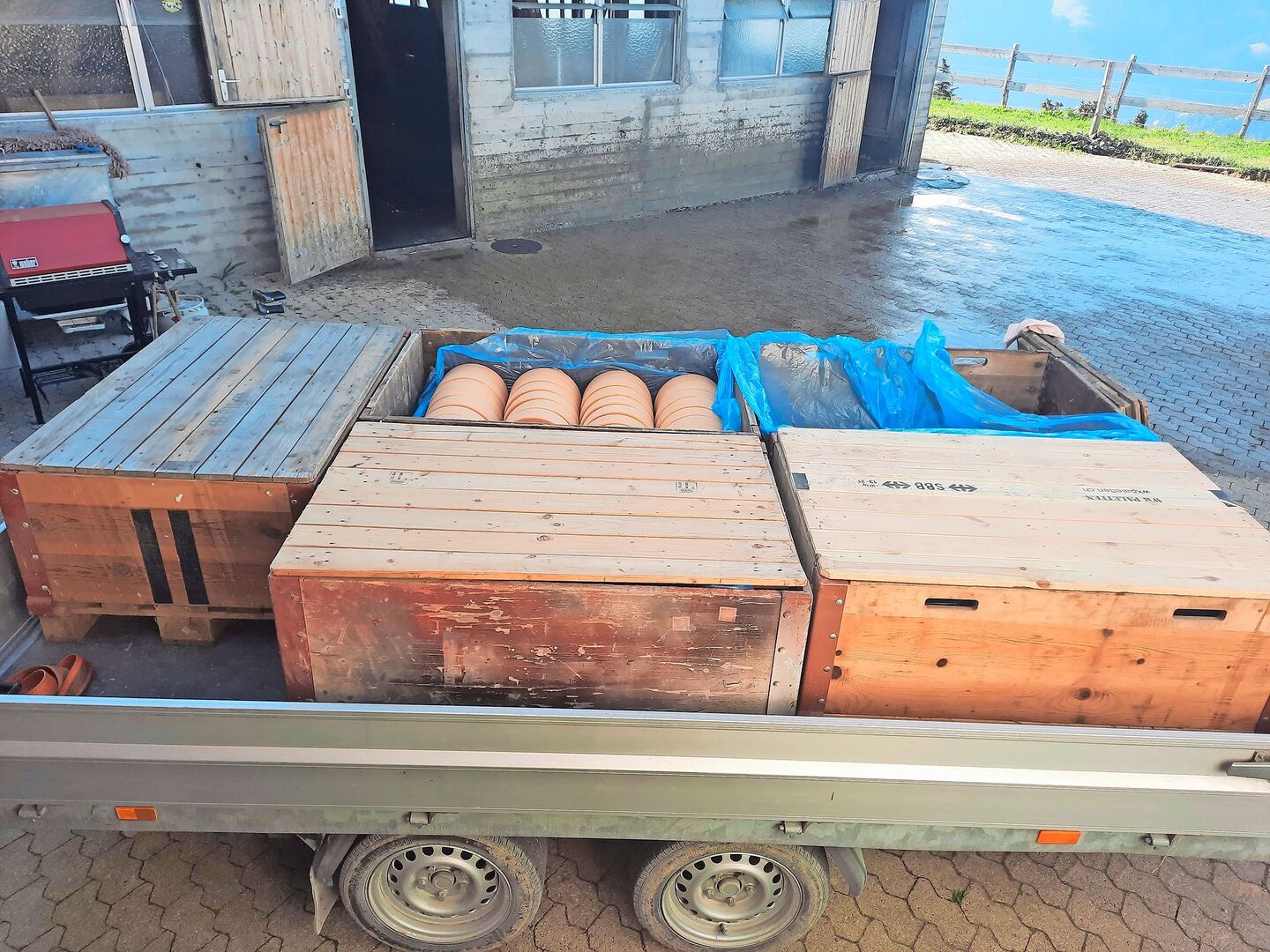 Noch keine fünf Minuten aus dem Auto ruft die Enkelin Anna bereits empört: «Hier oben stinkts!» Sogleich nimmt unsere Ronya das Mädchen bei der Hand und zeigt ihr «ihre Alp». Während die Drittklässlerin zum ersten Mal in ihrem Leben auf Tuchfühlung geht mit Schweinen und Ziegen, staunen die Erwachsenen nicht schlecht, als wir ihnen die Sennerei und Stallungen zeigen. Was für uns Alltag ist, sehen sie zum ersten Mal und sind völlig überwältigt.