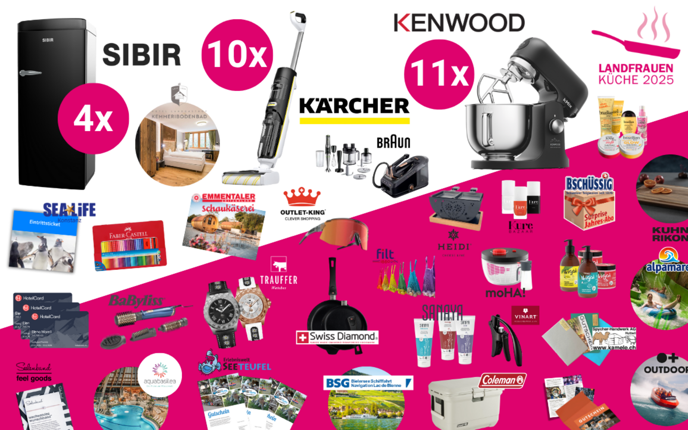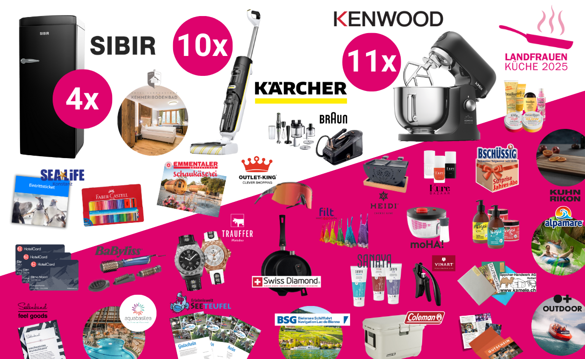 Jede Woche stellen wir Ihnen eine Quizfrage zu den Kandidatinnen und verlosen tolle Preise im Gesamtwert von über 19’000 Franken, darunter 4x einen Retrokühlschrank von Sibir, 10x einen Saugwischer von Kärcher, 11x eine Küchenmaschine kMix Swiss Edition von Kenwood und vieles mehr.