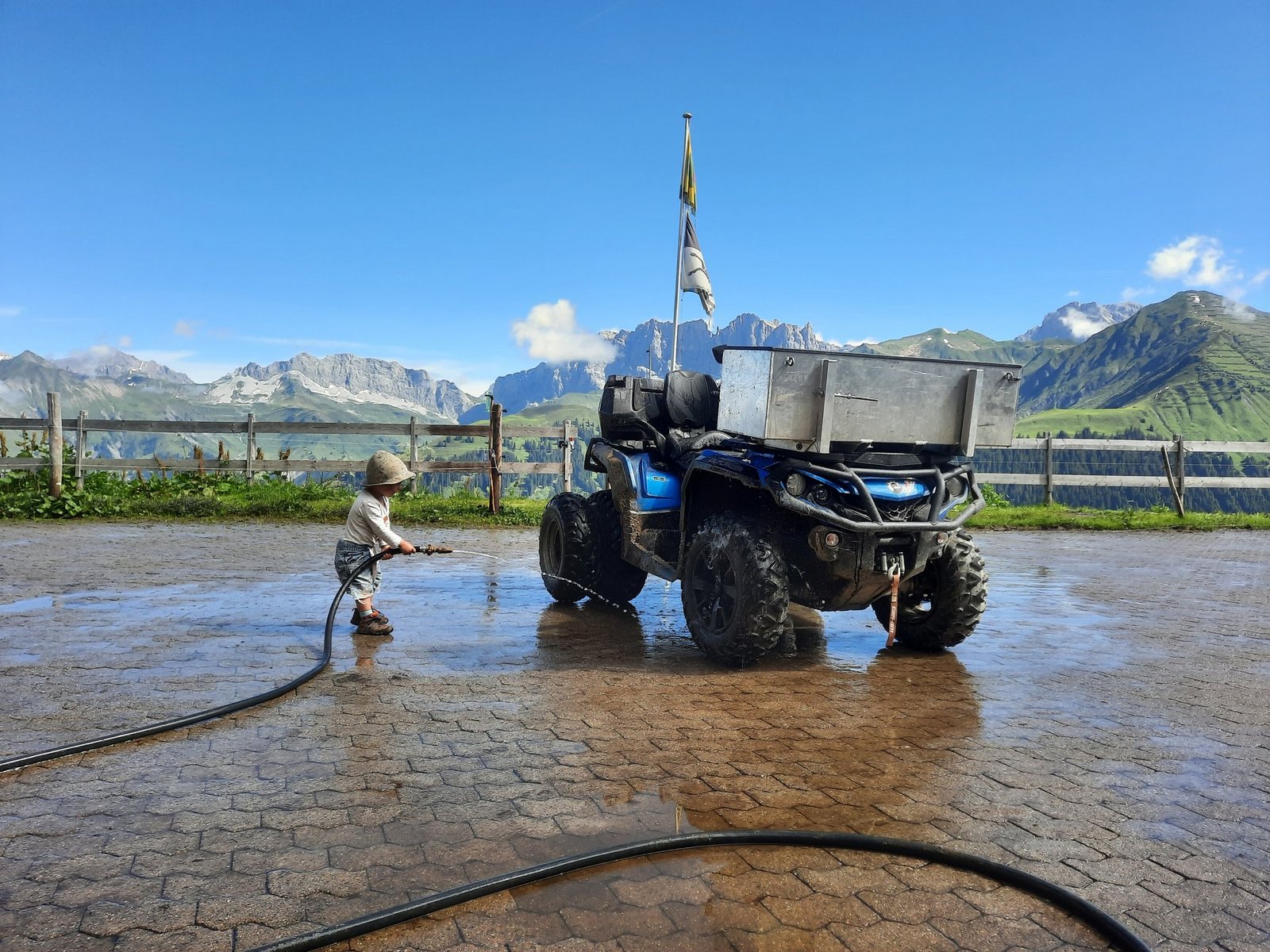 Nach sechs Wochen Alp sind die Kinder und ich am Sonntag zum ersten Mal nach Hause gefahren. Ronya freute sich riesig darauf, jeden Tag fragte sie, wie oft sie denn noch schlafen müsse. Gleichzeitig wollte sie wissen, wer denn unsere Arbeit übernimmt und auf unser Team aufpasst, wenn wir weg sind.