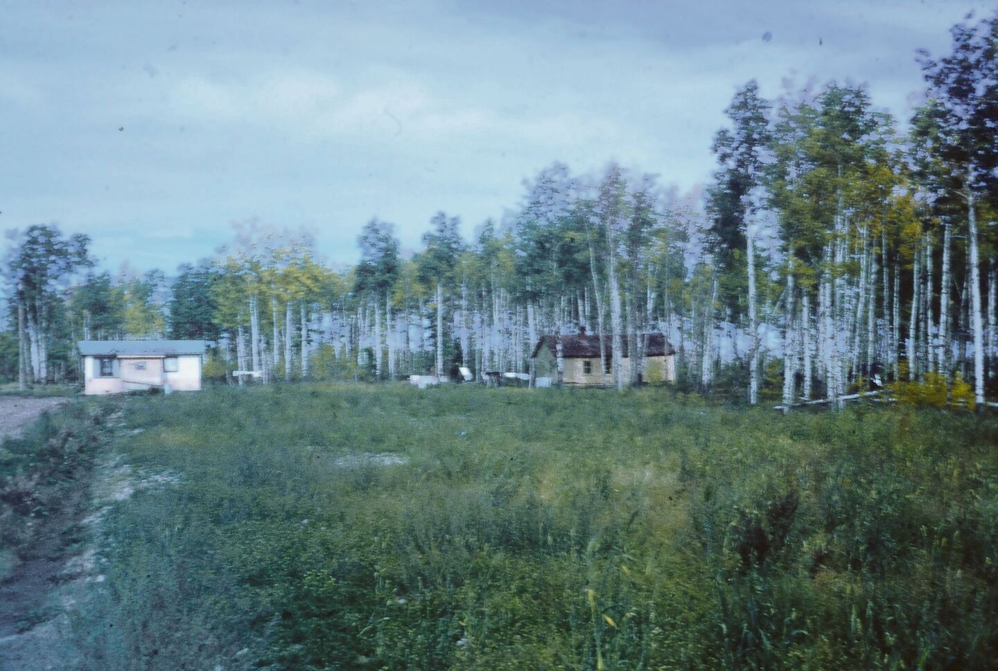 So wanderten meine Eltern im April 1963 nach Kanada aus. Ich war gerade fünf Jahre alt. Anfang September des gleichen Jahres zogen wir in das lachsfarbene Häuschen im Bild. Auf eine Pionierfarm im Norden von British Columbia (BC), wo weisse Farmer 50 Jahren davor das Land zu besiedeln begonnen hatten.
