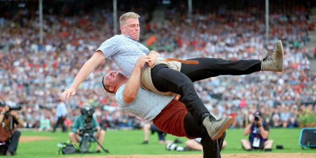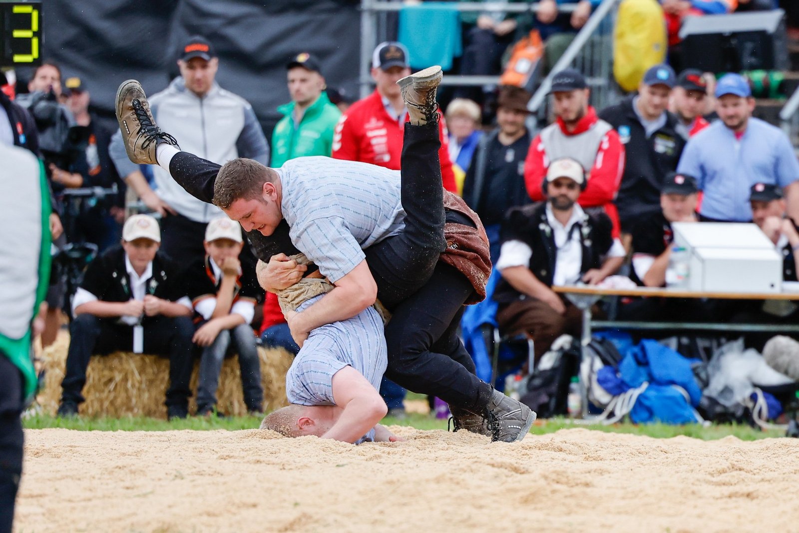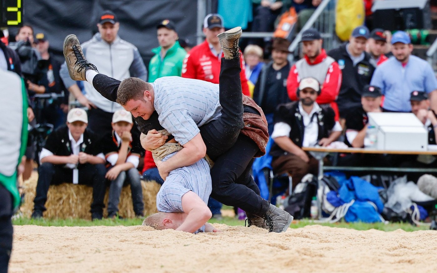 Er ist zweifelsohne eine grosse Hoffnung der Südwestschweizer: der Freiburger Landwirt Benjamin Gapany aus Hauteville. Im dritten Gang gelingt dem 28-Jährigen der grosse Coup. Er bodigt die, im wahrsten Sinne des Wortes, grosse Hoffnung der Innerschweizer, Primin Reichmuth. Gapany war in der Vergangenheit oft verletzt. Es gelang ihm zwar in Zug den Eidgenossen zu ergattern. Drei Jahre später, 2022 in Pratteln BL, musste er verletzt nach dem siebten Gang aufhören. Gapany führt nach dem 3. Gang punktegleich (30) mit Verbandskollege Steven Moser.