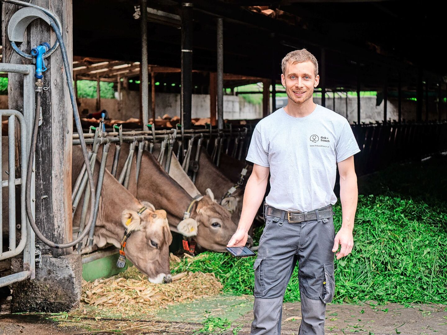 Wenn Christian Pfister in der Nacht aufwacht und auf sein Handy blickt, sieht er mit wenigen Daumenwischern, ob seine Zäune noch genug Strom geben, ob das Tränkefass auf der Weide noch über genügend Wasser verfügt oder ob er die Heubelüftung jetzt ausschalten soll, weil es gerade zu regnen angefangen hat. In letzterem Fall kann er dies bequem mit einem Daumendruck erledigen, sich anschliessend umdrehen und weiterschlafen.