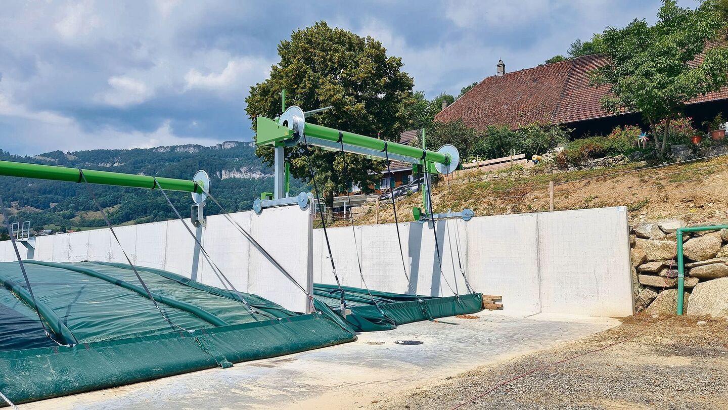 Anders als viele Landwirte hat Stefan Emch als erstes das Futtersilo gebaut und ist dann in die noch andauernde Planung für den neuen Stall gegangen. Besonders ist nicht das 15'000 m² grosse Fahrsilo selbst, sondern die automatische Abdeckung mit der Plane.