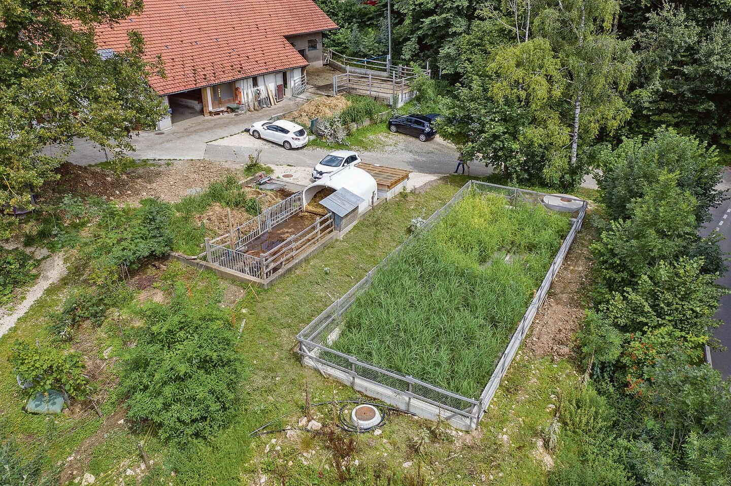Die Feststoffe im Schmutzwasser werden anfangs in einem Rottebehälter abgesondert, wo sie dann zu geruchsfreiem Humus verrotten und nach der Hygienisierung landwirtschaftlich ausgebracht werden können. Das Schmutzwasser wird mit einer Pumpe über einen mit Schilf bepflanzten vertikalen Sandfilter gespült, wo es nach und nach durchsickert. Gereinigt kommt es anschliessend in einen Kontrollschacht und schlussendlich in einen dafür angelegten Teich, um etwa für die WC-Spülung oder der Stallsäuberung wieder verwendet werden zu können, so Hümbelin. Letzteres sei noch in der Umsetzung. Die Pflanzenkläranlage funktioniere bereits.