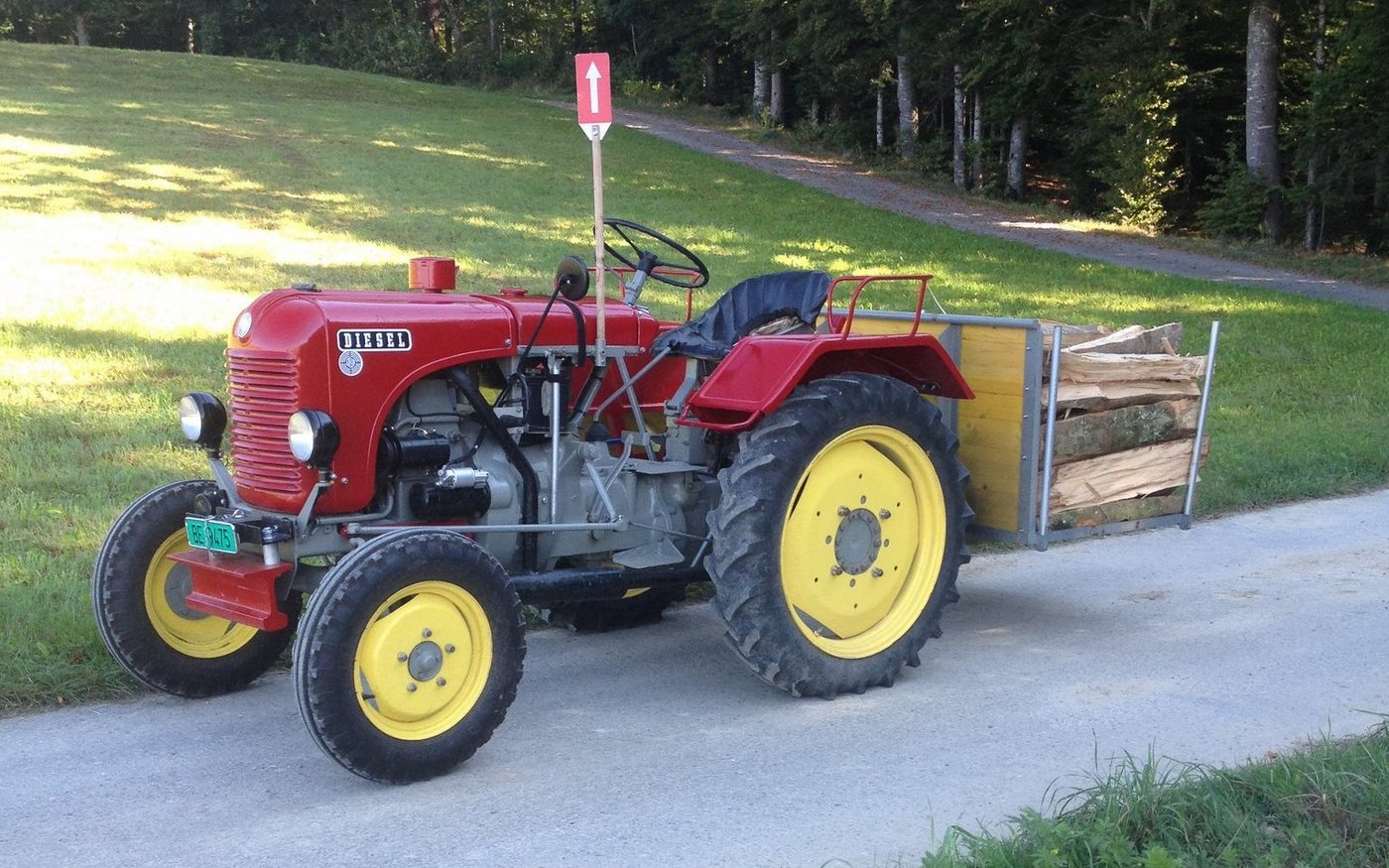 Nun ist er fertig und ich bringe mit dem Traktor meinem Kollegen das Brennholz nach Hause, oder gehe an ein Oldtimertreffen.