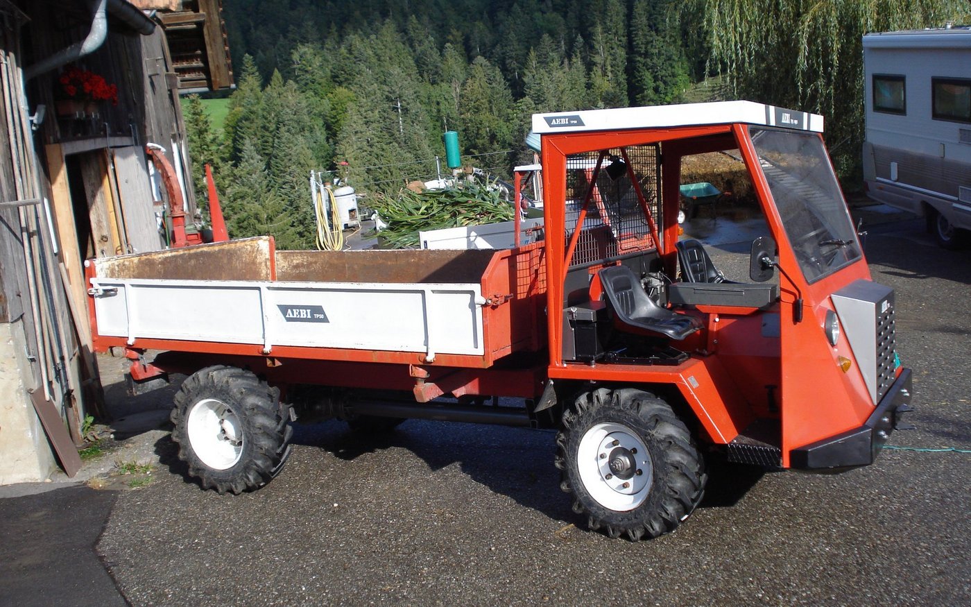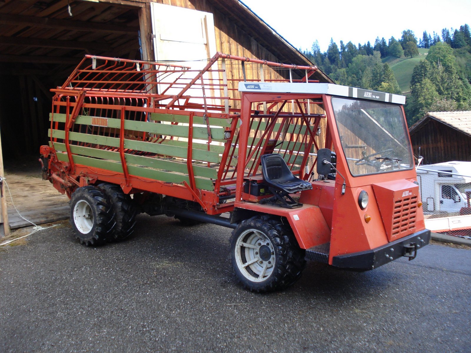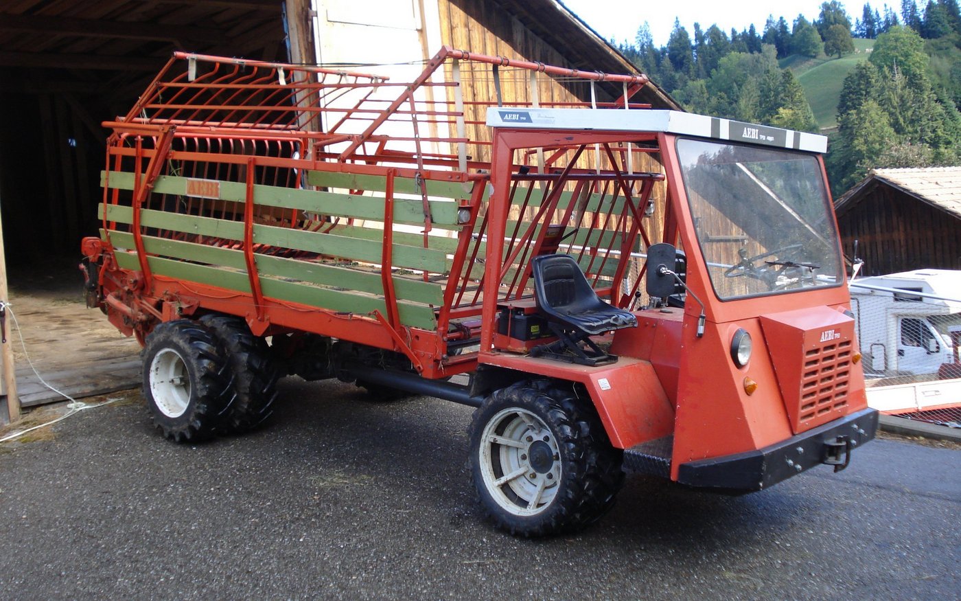 «Mein Ältester, mit dem Holzrückgerät und über 13'000 Betriebsstunden, war auch mein Erster», berichtet Andreas Meier. Für diesen hat er selbst einen Aufbau nach seinen Wünschen und Vorstellungen konstruiert, wie er so nicht auf dem Markt zu erhalten war – einem Heckauslauf mit Schieber zum Abfüllen in Karetten. Später folgten der Kipper von 1981 und der Ladewagen von 1982.