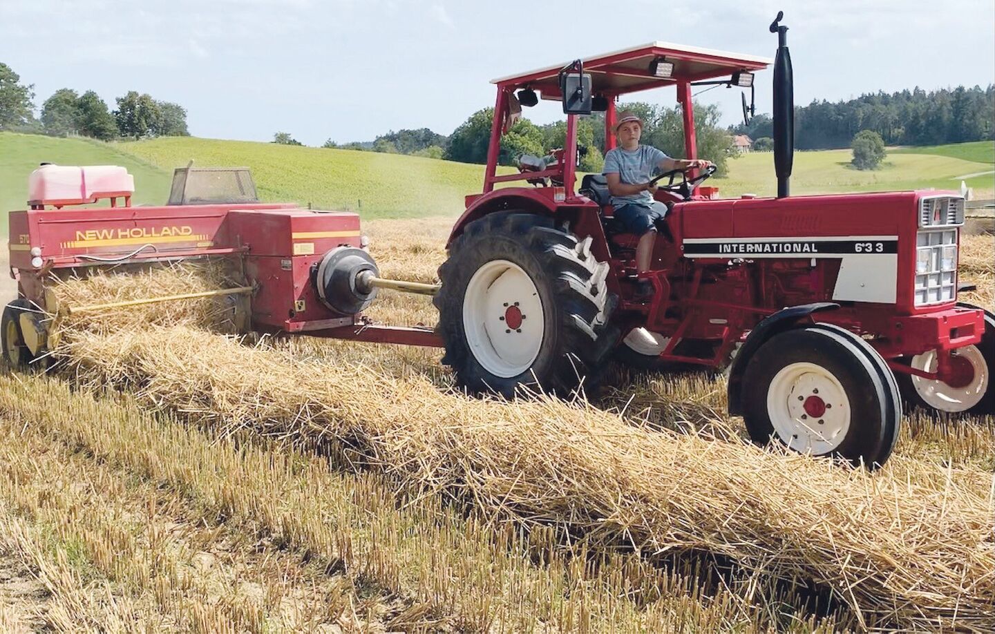 Natürlich sah man dem Traktor das Alter an, denn er hatte erhebliche Gebrauchs- und Verschleissspuren. Auch leckten die Hinterachsen. Nach einer Restaurationszeit von ungefähr sechs Monaten erwachte mein Bubentraum im Mai 2021 als 41-jähriger Ackerschlepper wieder zu einem zweiten Leben. Wobei der IHC 633 vor 35 Jahren nicht ahnte, dass er so viele Jahre später noch an der Kleinballenpresse zum Einsatz kommen würde.