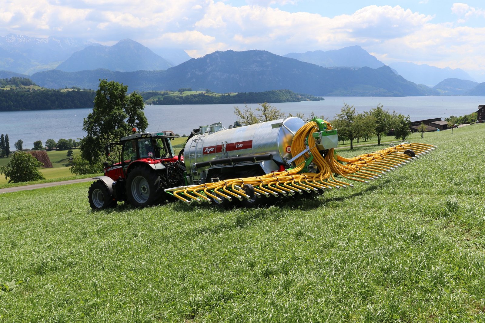 Wer bereits ein Güllefass besitzt, hat die Möglichkeit, den Schleppschlauch- bzw. Schleppschuhverteiler auf das Fass nachzurüsten, solange die Achsenlast und das Gesamtgewicht eingehalten werden. «Für eine mögliche Anpassung der Nutzlast sollte man sich beim Hersteller melden», informiert Armin Betschart von der Hochdorfer AG.