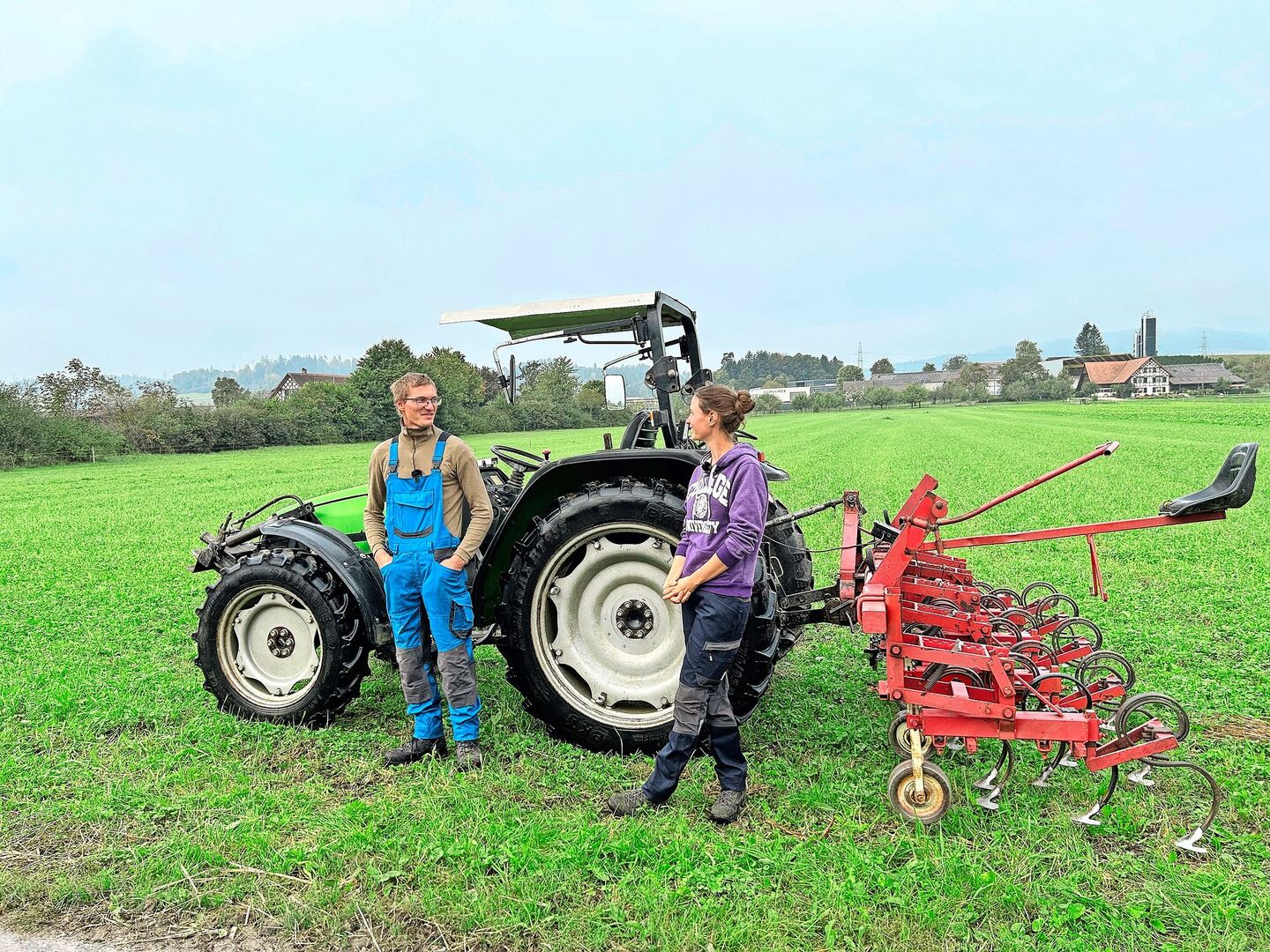 Die frei gewordene Arbeitszeit nutzt das Ehepaar Rindlisbacher, um Haus, Hof und Felder auf Vordermann zu bringen. 2019 pachteten sie einen Betrieb mit einem kleinen Laufstall in Hettlingen ZH, wo sie Mastremonten halten. 2021 konnte Simon Rindlisbacher schliesslich den elterlichen Betrieb in Seuzach kaufen. Dieser war zuvor fremdverpachtet und wurde konventionell bewirtschaftet. Die Umstellung auf Biolandbau und das «in Schuss halten» der Böden erforderten Zeit und Geduld. «Umso wichtiger sind für uns daher möglichst leichte Maschinen wie zum Beispiel unser Hackgerät. Dieses erlaubt es uns, auch einmal bei nicht ganz optimalen Bedingungen ins Feld zu fahren», meint Simon Rindlisbacher.