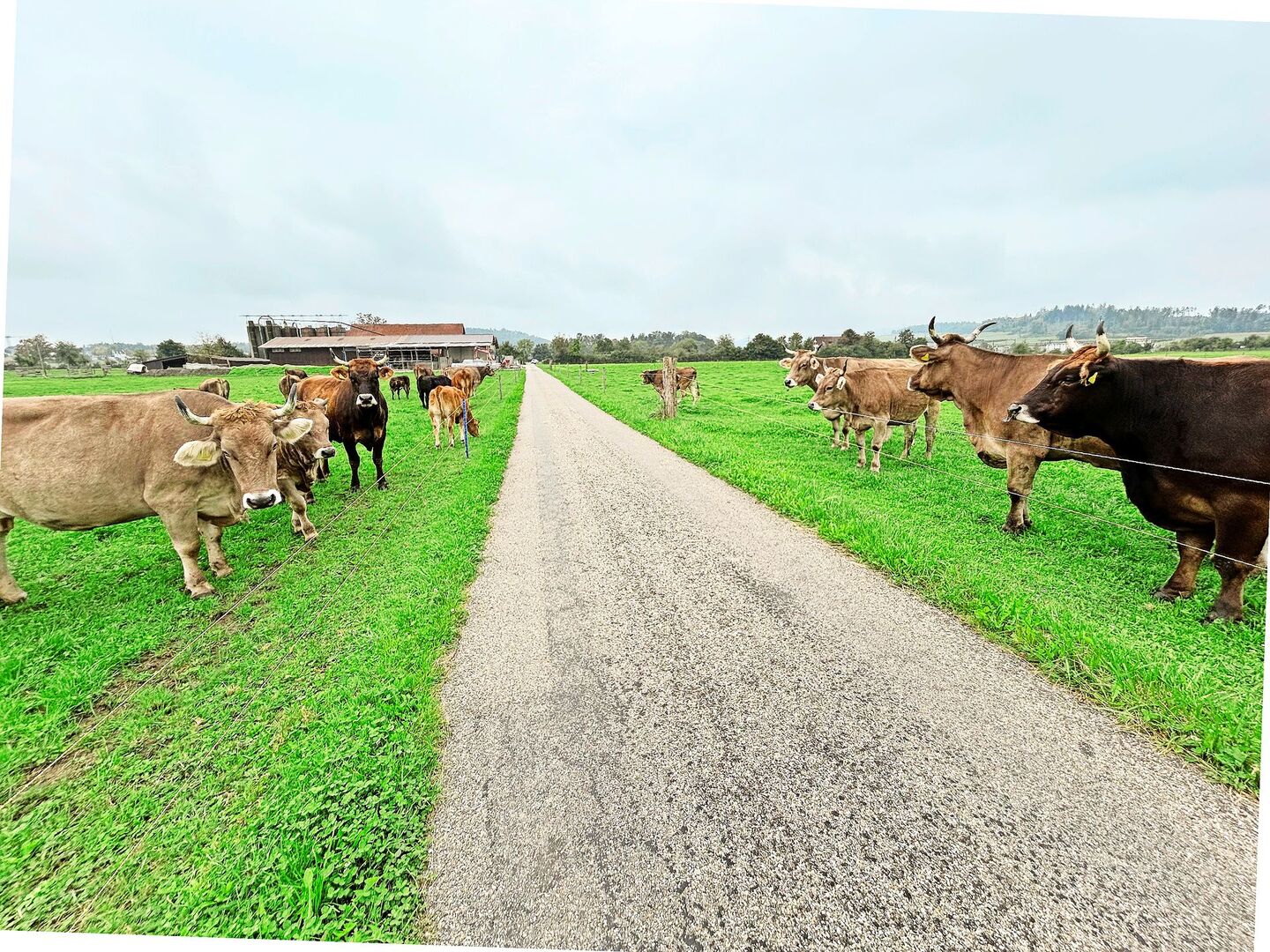 Tierbestand: 30 Mutterkühe, 30 Mastremonten, Legehennen