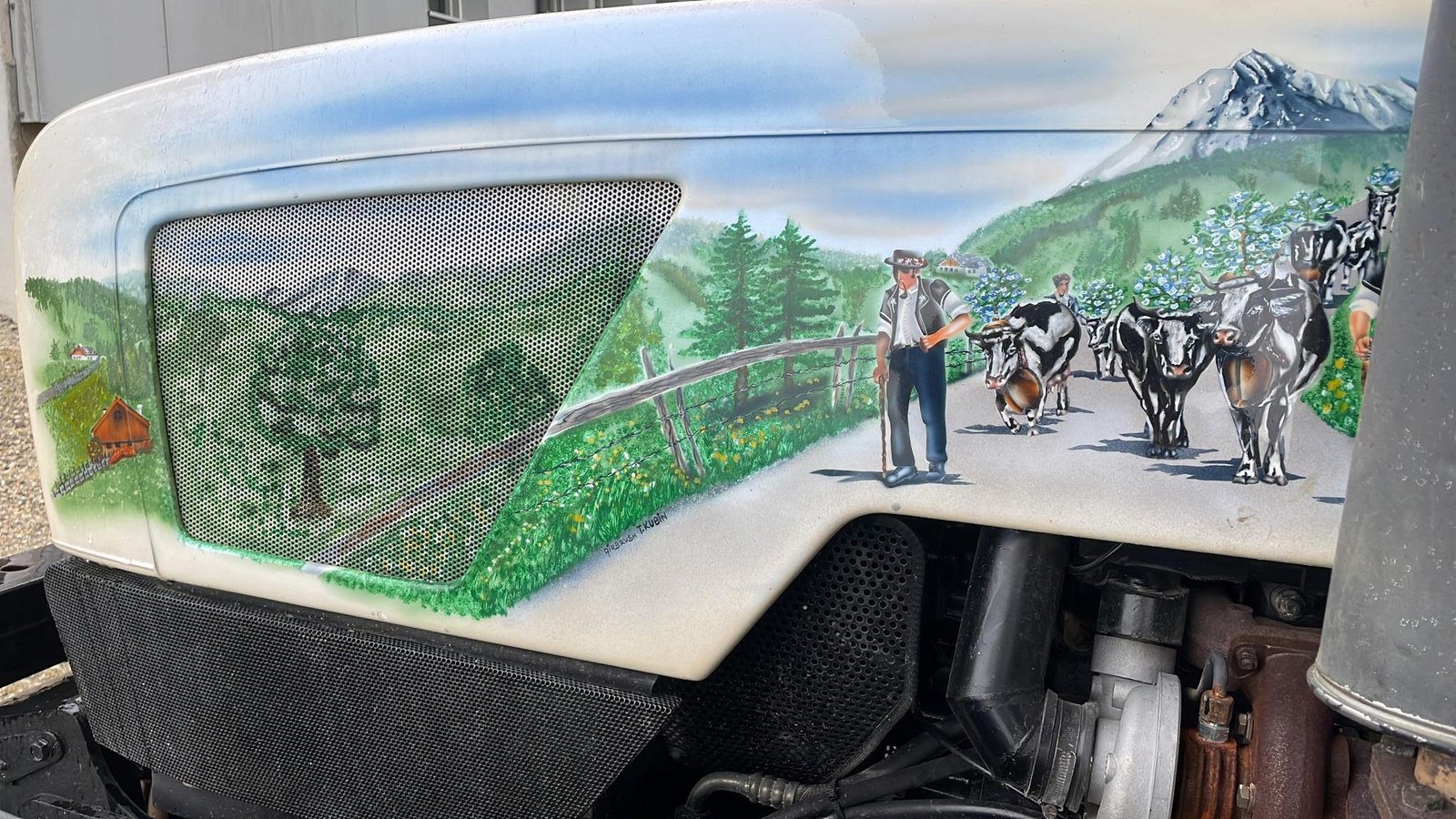 Peter und Erika Howald hatten bereits einen Steyr und waren damit vollkommen zufrieden. Als sie jedoch 1993 an der BEA den Steyr 970 A in einer Sonderanfertigung sahen, ist es um sie geschehen. Auf dem weissen Traktor wurde von der Künstlerin T. Kubin ein Alpaufzug bzw. Alpabzug mit der Airbrush-Technik dargestellt. «Von diesem existieren nur zwei Stück weltweit, wie uns die Firma Berger damals mitteilte», sagt Erika Howald begeistert.