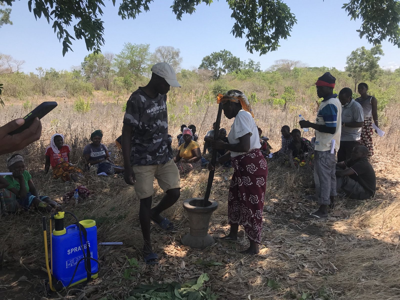 Gemeinsam mit dem Agronomen-Team der NRO biete ich ausserdem eine Grundausbildung in konservierender Landwirtschaft an. Traditionell brennen die Landwirte hier nämlich zunächst ihre Felder ab und bauen danach ihre Kulturen darauf an. Mechanisierung gibt es fast keine, wodurch die Arbeit zur Feldbereitung äusserst mühsam ist. Manchmal müssen die Männer sogar Hunderte von Bäumen mit der Axt roden, um neue Anbaugebiete zu erschliessen. Zwar erleichtert die Brandrodung die Arbeit und die Asche dient als Dünger, aber auf lange Sicht hat diese Form der Bewirtschaftung negative Auswirkungen auf die Umwelt und die Bodenqualität. Durch das Feuer verringert sich die Bodenfauna und trägt nicht mehr zum Abbau der organischen Substanz bei. Gleichzeitig ist der Boden durch die Zerstörung seiner Bedeckung viel stärker der Erosion ausgesetzt. Die Bodenfruchtbarkeit nimmt so immer mehr ab. Dies hat zur Folge, dass gewisse Gebiete unserer Provinz schon fast nicht mehr kultivierbar sind.
