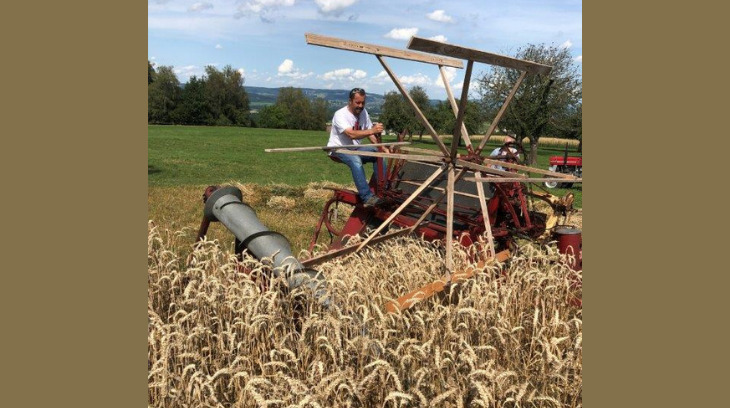 Sein Vater war es, der vor sechs Jahren ein Inserat des Bindemähers in der Zeitung fand. «Nicht weit von unserem Wohnort entfernt, stand dieser jahrelang im Schopf. Wir haben ihn gekauft und wollten ihn gleich wieder funktionsfähig machen.» So packten Vater und Sohn an, frischten den etwa 81-jährigen Bindemäher auf und legten auf dem Acker gleich los. «Wir hatten ein enormes Glück, dass er von Anfang an funktionierte. Auch fanden wir schon bald über einen Oldtimerfreund die richtige Schnur zum Binden der Getreidehalme», erzählt er begeistert.