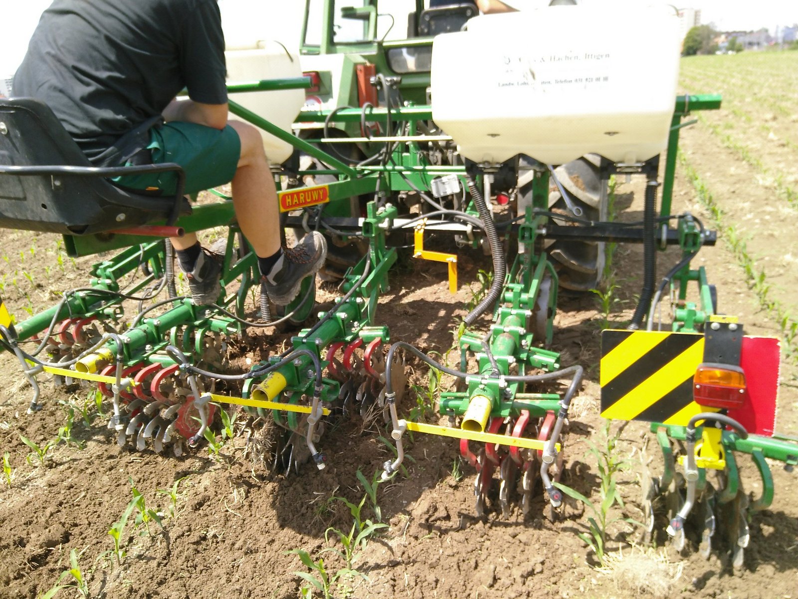 Mechanische Unkrautbekämpfung: Bei der mechanischen Unkrautbekämpfung muss ein Saatbett mit genügend Feinerde erstellt werden, was ein Verschütten und Ausreissen der Unkräuter vereinfacht. Ab dem 6- bis 8-Blatt-Stadium des Mais sollte die Unkrautbekämpfung mit den Hackgeräten abgeschlossen sein. Ab diesem Zeitpunkt hat der Mais genügend Vorsprung, um den Unkräutern davon zu wachsen.