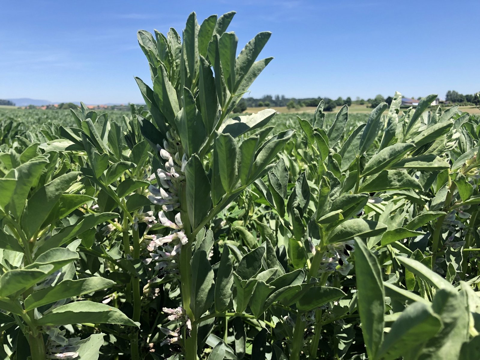 Auskernbohnen eignen sich laut der Agronomin dort, wo Hacken möglich ist – die Pflanzen sind konkurrenzschwach. Es sollten also nicht zu steile Flächen gewählt werden. Was den Boden angeht, so seien ein pH zwischen 6-7,5 und eine gute Wasserspeicherfähigkeit ideal. «Auf sandigem Untergrund und bei Sommertrockenheit kann es passieren, dass die Blüten abgeworfen werden», warnt Rediger. Ein Reihenabstand von 50 cm habe sich bewährt, weil viele Betriebe dafür die passende Mechanisierung haben. «Wenn auf engeren Abständen gehackt werden kann, ist das auch gut.»